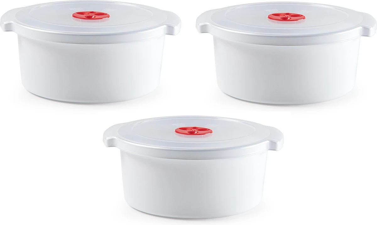 3x Stuks Magnetron Voedsel Opwarmen Potjes/bakjes 3 Liter Met Speciale Deksel – 25 X 23 X 10 Cm