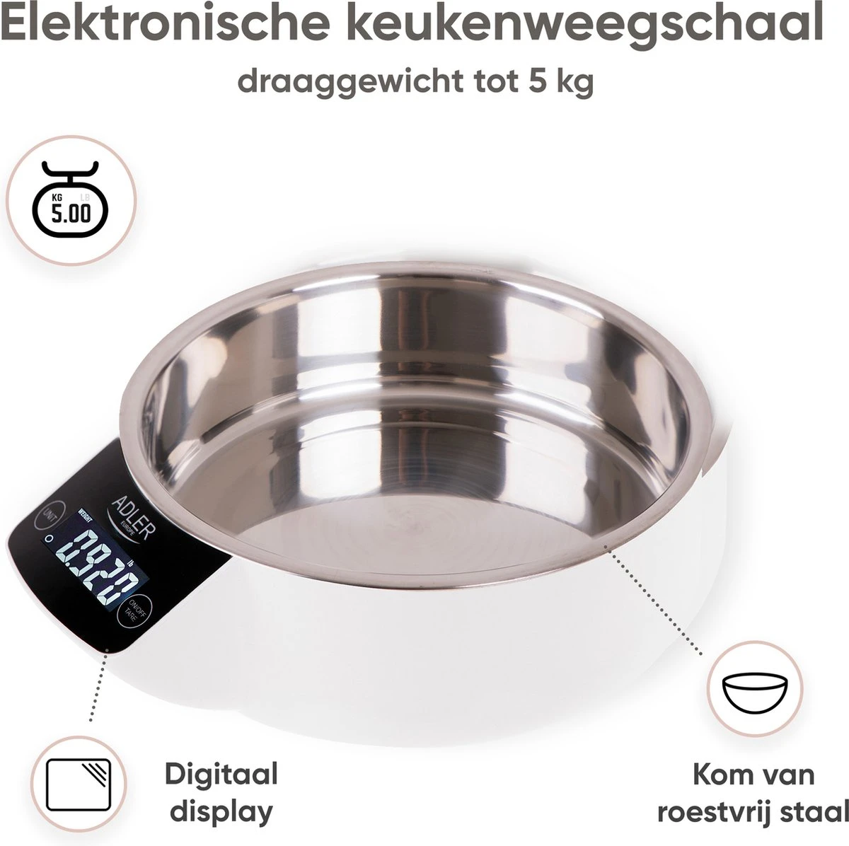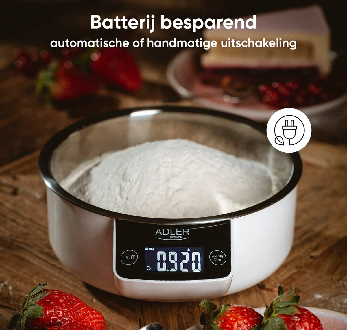 De weegschaal komt met een flinke mengkom van 0,9 liter. Naast dat deze ook een prachtige look heeft is hij hierdoor gemakkelijk te verwijderen en onder de kraan af te wassen. Dit maakt zelfs opruimen een fluitje van een cent!