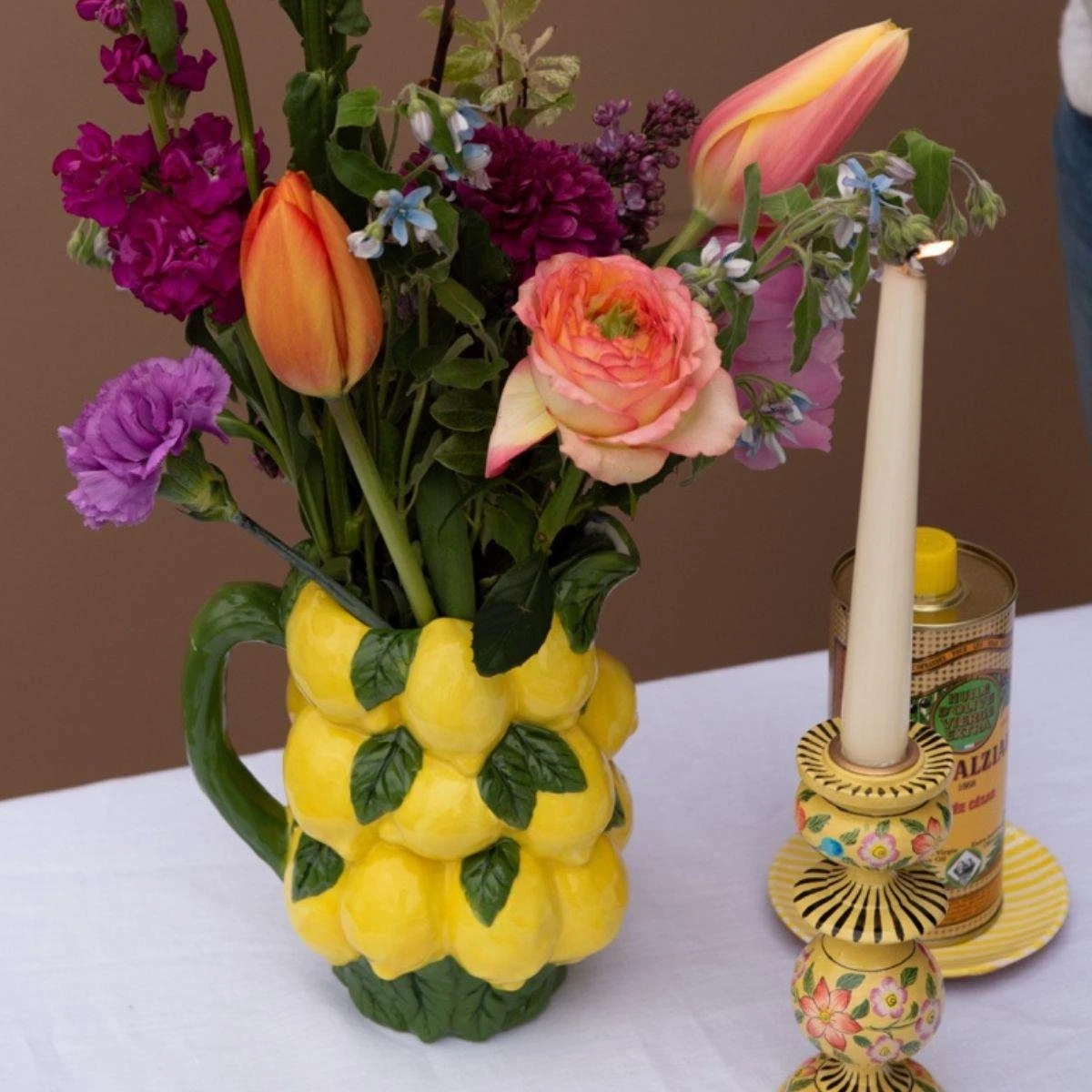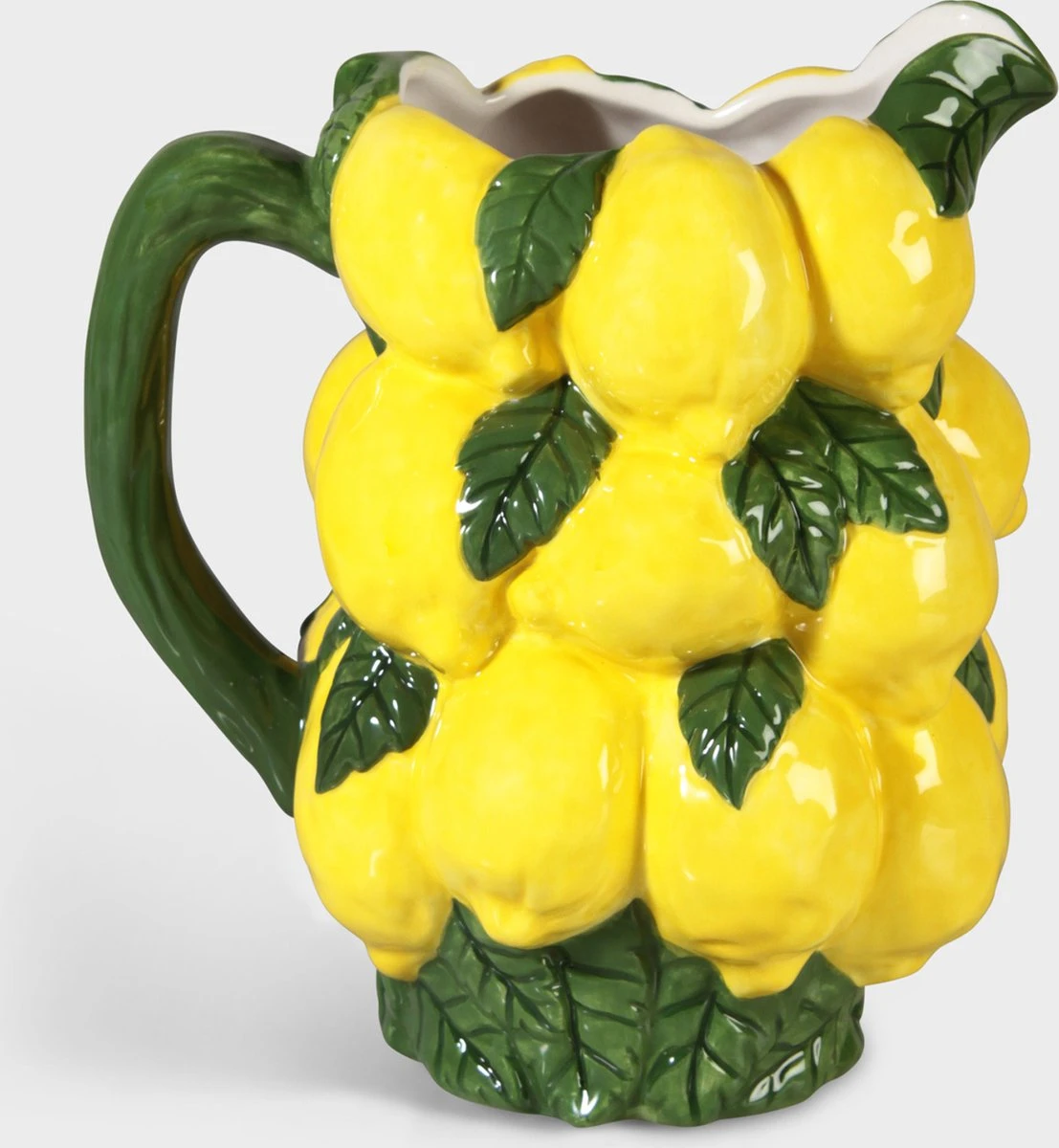 Deze levendige citroenkaraf is perfect om een vleugje zomer in je huis te brengen. Vul hem met ijswater, versgeperste limonade, of je favoriete zomercocktail. De unieke vorm en vrolijke kleur maken hem tot een opvallende verschijning op je tafel. Combineer hem met andere felgekleurde borden en servetten voor de perfecte zomerse setting.