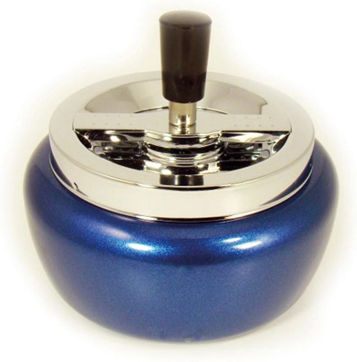 Deze asbak heeft de volgende kenmerken: Kleur: BlauwDiameter: 12 cmHet is een draaiende asbak die perfect is voor gebruik op tafel of op een andere vlakke ondergrond. Met een diameter van 12 cm biedt hij voldoende ruimte voor as en sigarettenpeuken. De blauwe kleur zorgt ervoor dat de asbak goed past bij verschillende interieurstijlen.