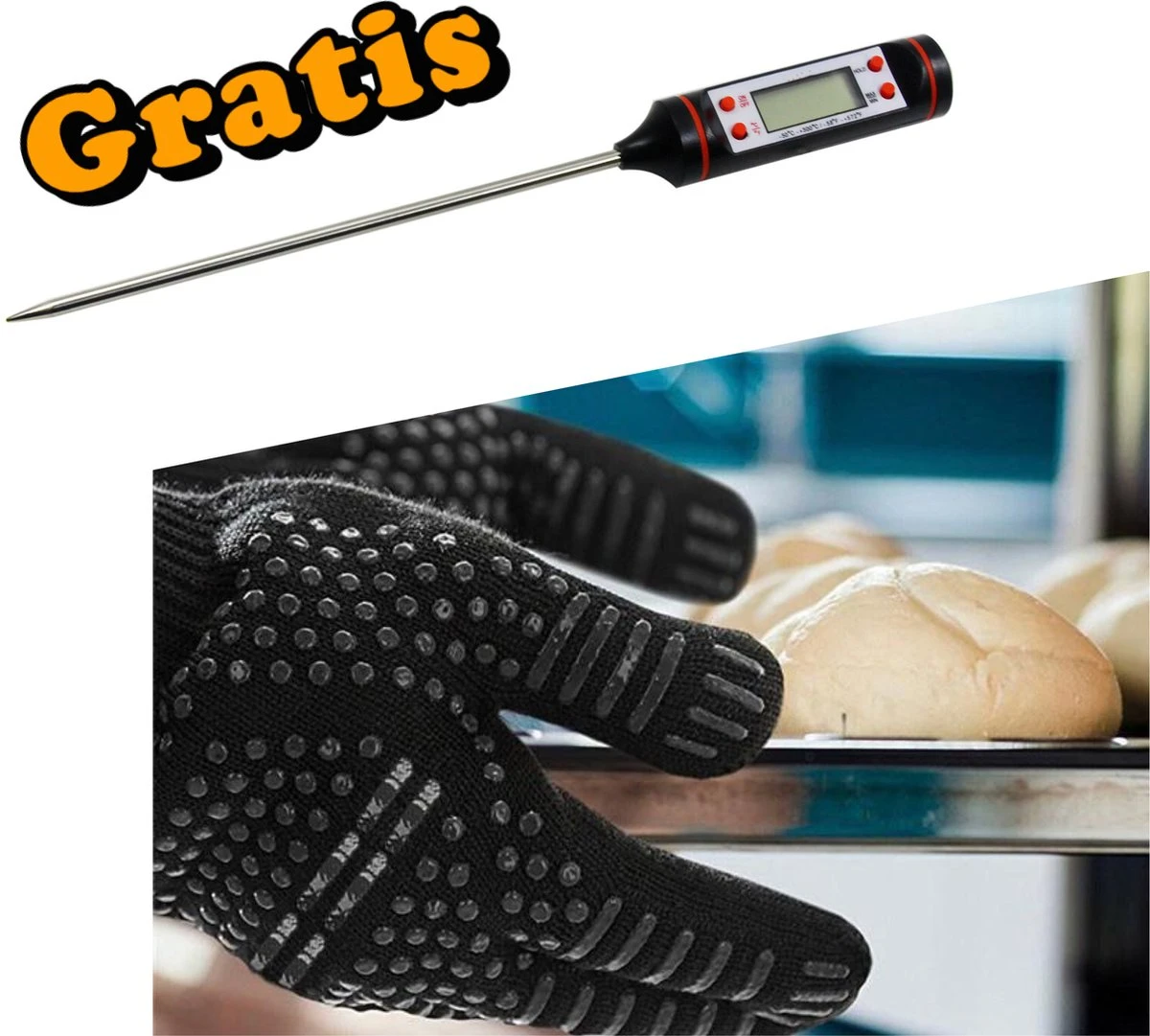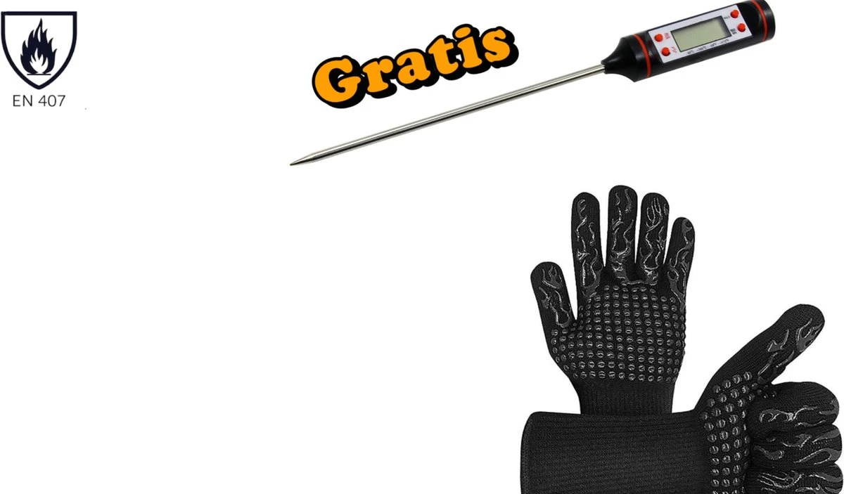 | Verpakkingsinhoud | BBQ Ovenwanten- Met gratis Vleesthermometer |