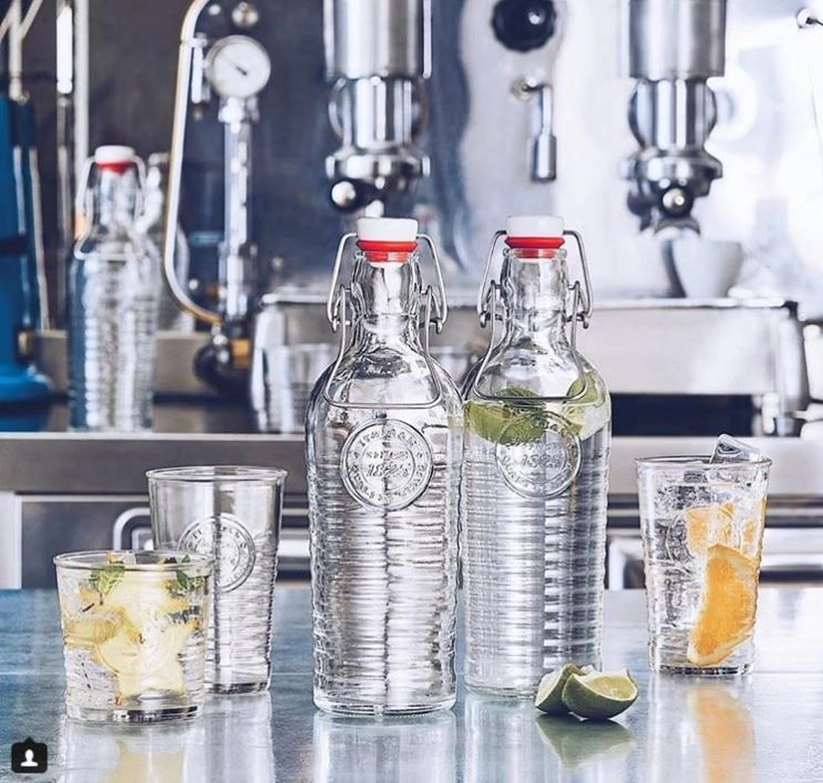 Deze stoere karaf met beugel met een inhoud van 1,2 liter uit de Officina serie van Bormioli Rocco is niet te missen op je ingedekte tafel. De beugel aan de karaf creëert een speels effect. Deze fles is op meerdere manieren te gebruiken… als waterfles bij een diner of als decoratie op tafel. Daarnaast is de fles door zijn beugel gemakkelijk en luchtdicht af te sluiten, waardoor hij ook perfect te gebruiken is voor limonade of olie.