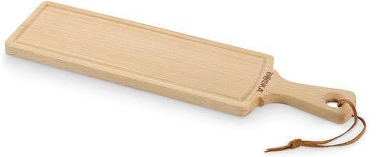 De plank is van beukenhout gemaakt en heeft een landelijke uitstraling. Door het handige handvat kun je hem eenvoudig verplaatsen en ophangen. Met de juiste zorg gaat deze plank levenslang mee. Gebruik je de serveerplank voor het eerst? Smeer hem regelmatig goed in met BOSKA Plankolie. Dit beschermt de plank tegen splijten en het intrekken van vlekken en geuren.