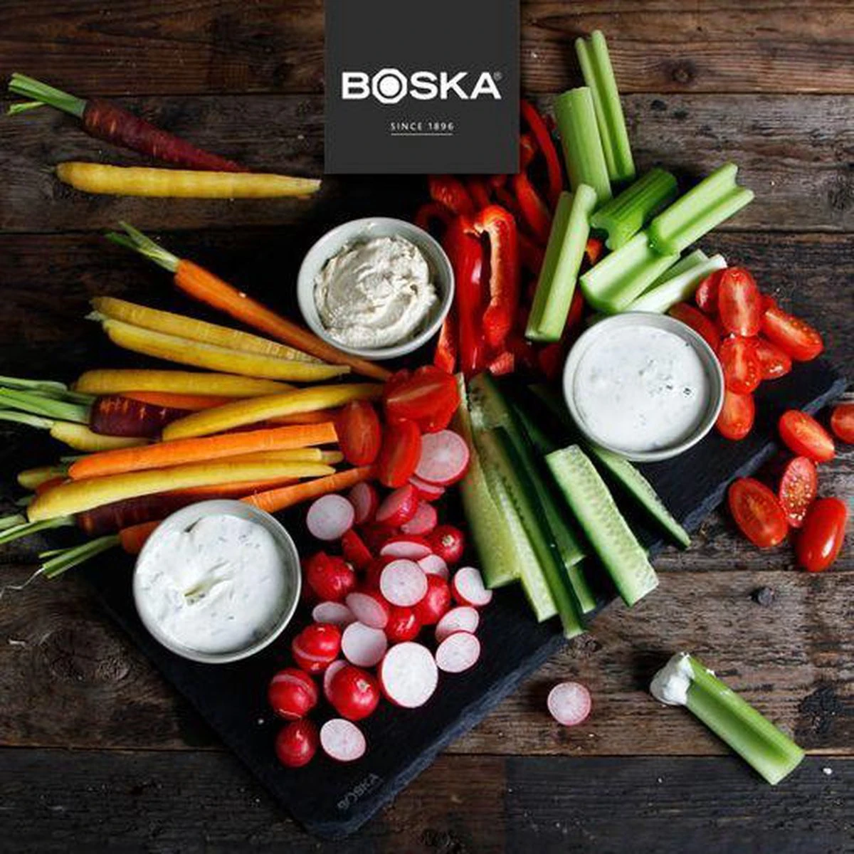 Verras je familie en vrienden met de lekkerste kazen en tapas. Op de Serveerplank Leisteen L van BOSKA ziet het er nog smaakvoller uit. Door de anti-slip voetjes blijft deze plank van een hoge kwaliteit leisteen stevig op tafel staan. Zelfs tijdens de meest uitbundige feesten! Deze serveerplank heeft een luxe uitstraling en is gemaakt van een hoge kwaliteit leisteen van 8mm dik. Een fijn voordeel: leisteen neemt geen bacteriën en geuren op. Spray de plank maandelijks in met BOSKA Plankolie. Zo ziet de plank er nog langer spik en span uit.