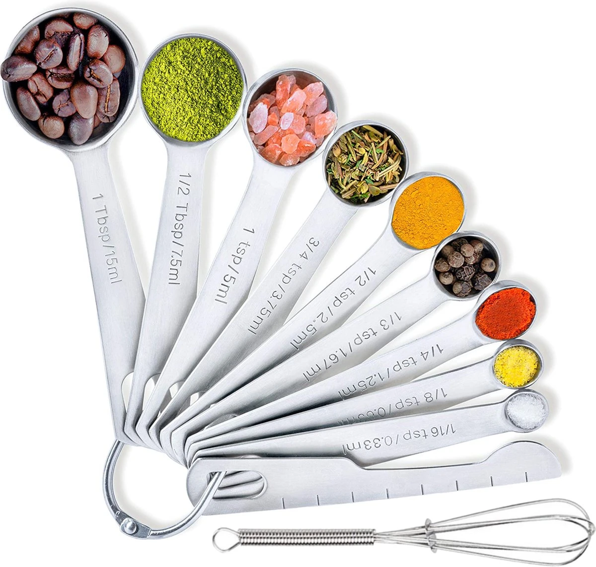 Elke maat is gegraveerd op het handvat van elke lepel, waardoor het giswerk bij het toevoegen van kruiden wordt weggenomen. Verfijn de metingen om elke keer de perfecte balans van de voedselsmaak te garanderen.
