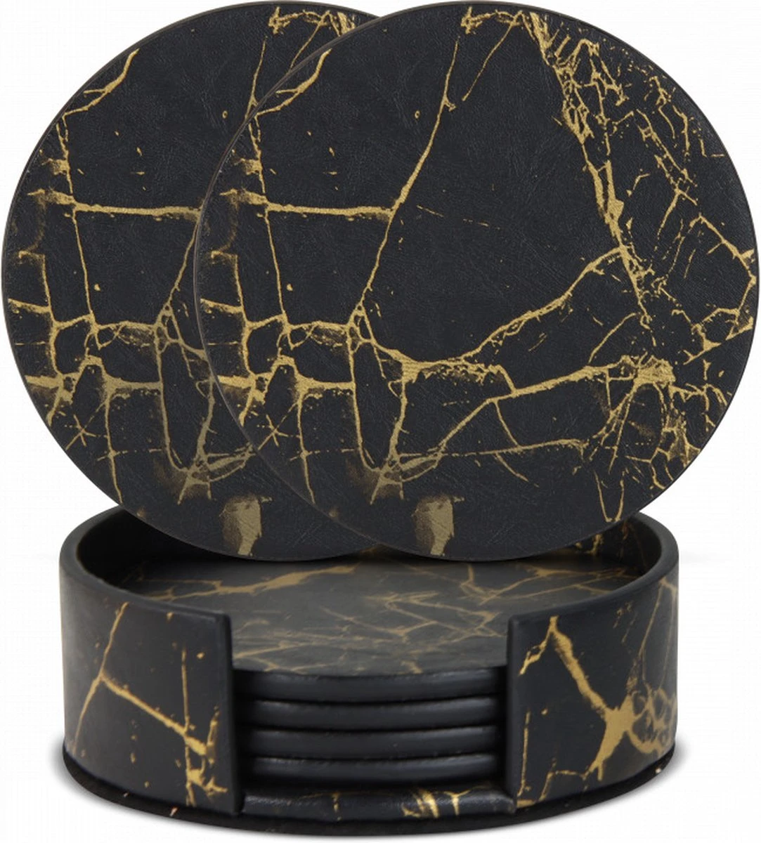 · Met lederen houder – Om de onderzetters op een stijlvolle manier op te kunnen bergen wordt de set geleverd met een bijpassende houder.