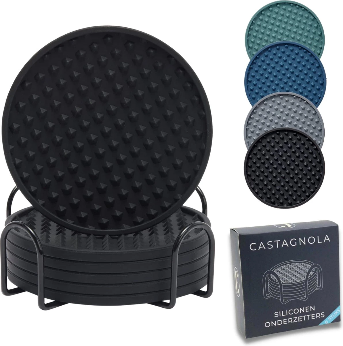 Je wilt jouw tafel natuurlijk beschermen tegen lelijke kringen en krassen. Met deze fijne set design onderzetters van Castagnola doe jij dat op een stijlvolle manier! Deze onderzetters zijn ideaal om jouw tafel te beschermen, terwijl de onderzetters ook gelijk een mooie aanwinst zijn voor het interieur dankzij hun moderne en chique uitstraling. De onderzetters zijn gemaakt van hoogwaardige en flexibele siliconen en hebben anti-plak en anti-slip eigenschappen. De onderzetters worden in een metalen houder geleverd waardoor ze eenvoudig en netjes opgeborgen kunnen worden.