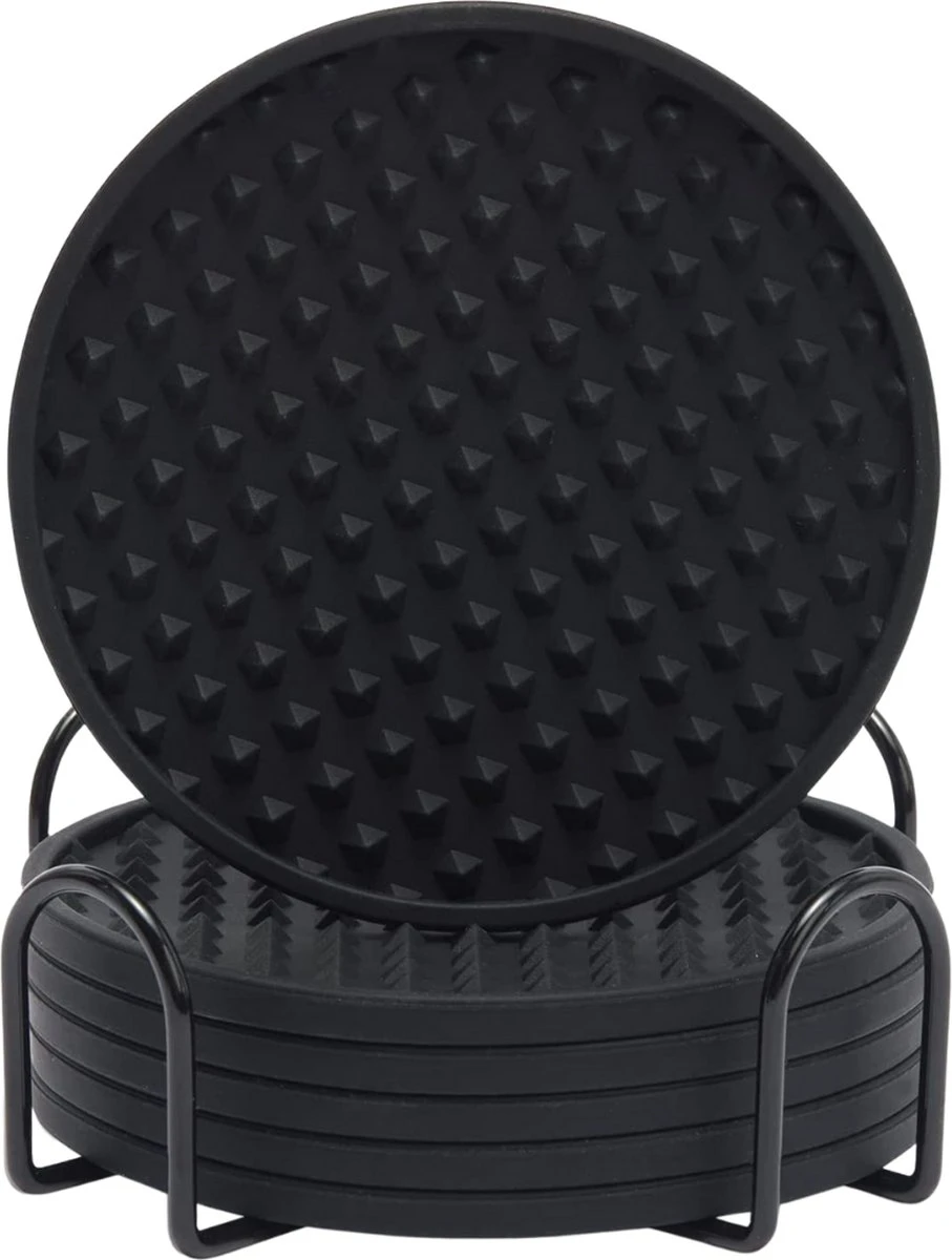 De onderzetters zijn gemaakt van hoogwaardig siliconen. Siliconen heeft als voordeel dat er geen krassen in de tafel kunnen ontstaan door de onderzetters zelf. De onderzetters hebben een uniek design met een anti-plak profiel die de glazen stevig op hun plek laat staan. Het profiel vangt het vocht van de glazen perfect op, waardoor kringen voorkomen worden. Zijn de onderzetters vies of plakkerig geworden? Dan spoel je ze eenvoudig en snel even af of stop je ze gewoon in de vaatwasser!