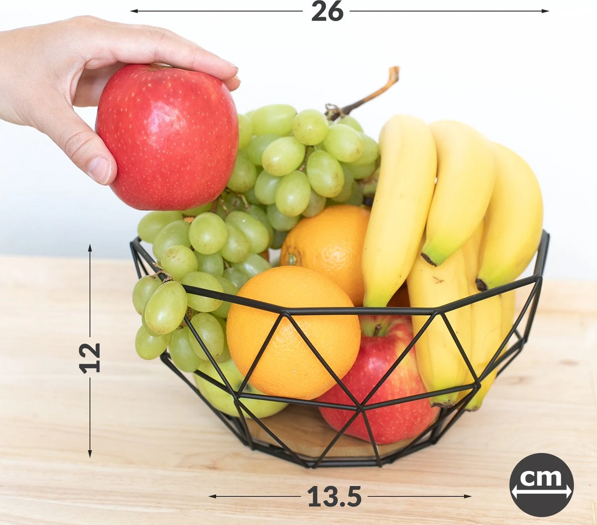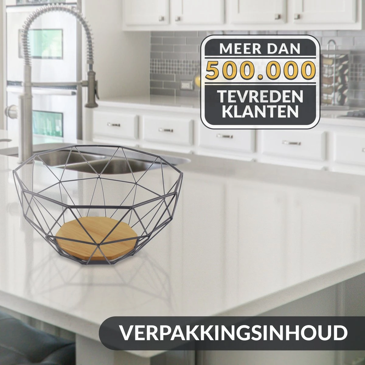 Door het donkere metaal en het lichte hout geeft de fruitschaal de keuken een bijzondere flair. Het speelse ontwerp is een echte musthave voor in elke keuken, kantoor of andere ruimte. De moderne vintage look past bij vrijwel elk interieur en zorgt ervoor dat die heerlijke appels of groentewaren goed bij elkaar blijven, zonder dat er striemen op het fruit ontstaan.