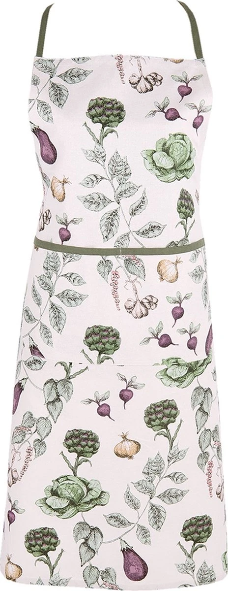 Katoen Kook-Keukenschort van het merk Clayre & Eef.Groente motief in een landelijke stijl met een romantische uitstraling.Uit de keukentextielserie The Kitchen Garden. BBQ Schort Cadeau voor haar Kookschort
