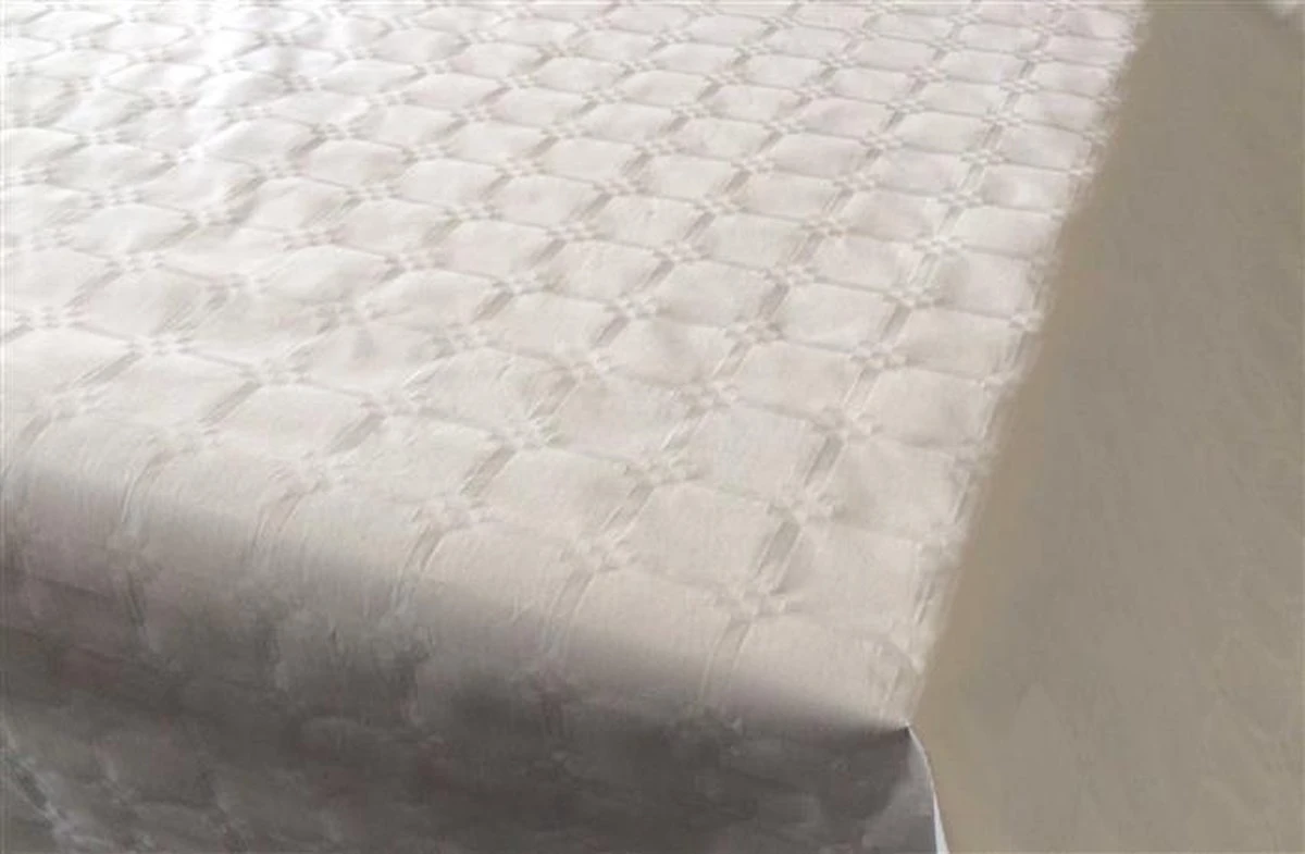 Damast tafelkleed is 118cm breed en zit op een rol de totale lengte is 8m. De kleur is wit. Dit tafelkleed is gemaakt van papier dus wegwerp.