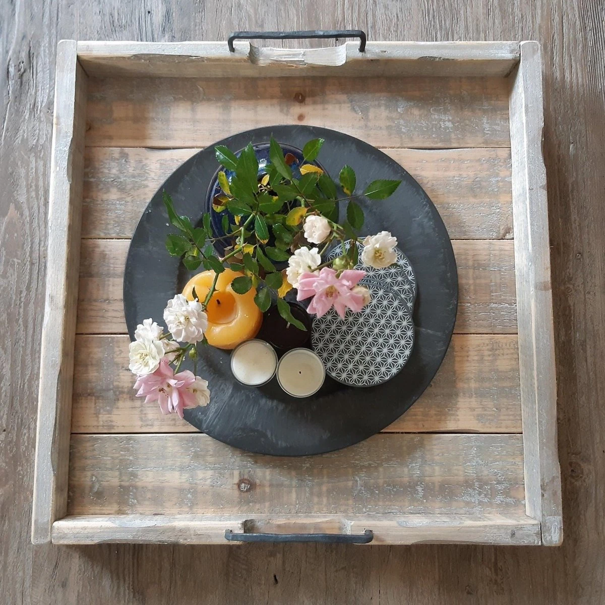 Mis jij ook een leuke plek om decoratie op te plaatsen? Of iets origineels om je hapjes of drankjes op te serveren? Dan is dit dienblad vierkant van hout wat voor jou!