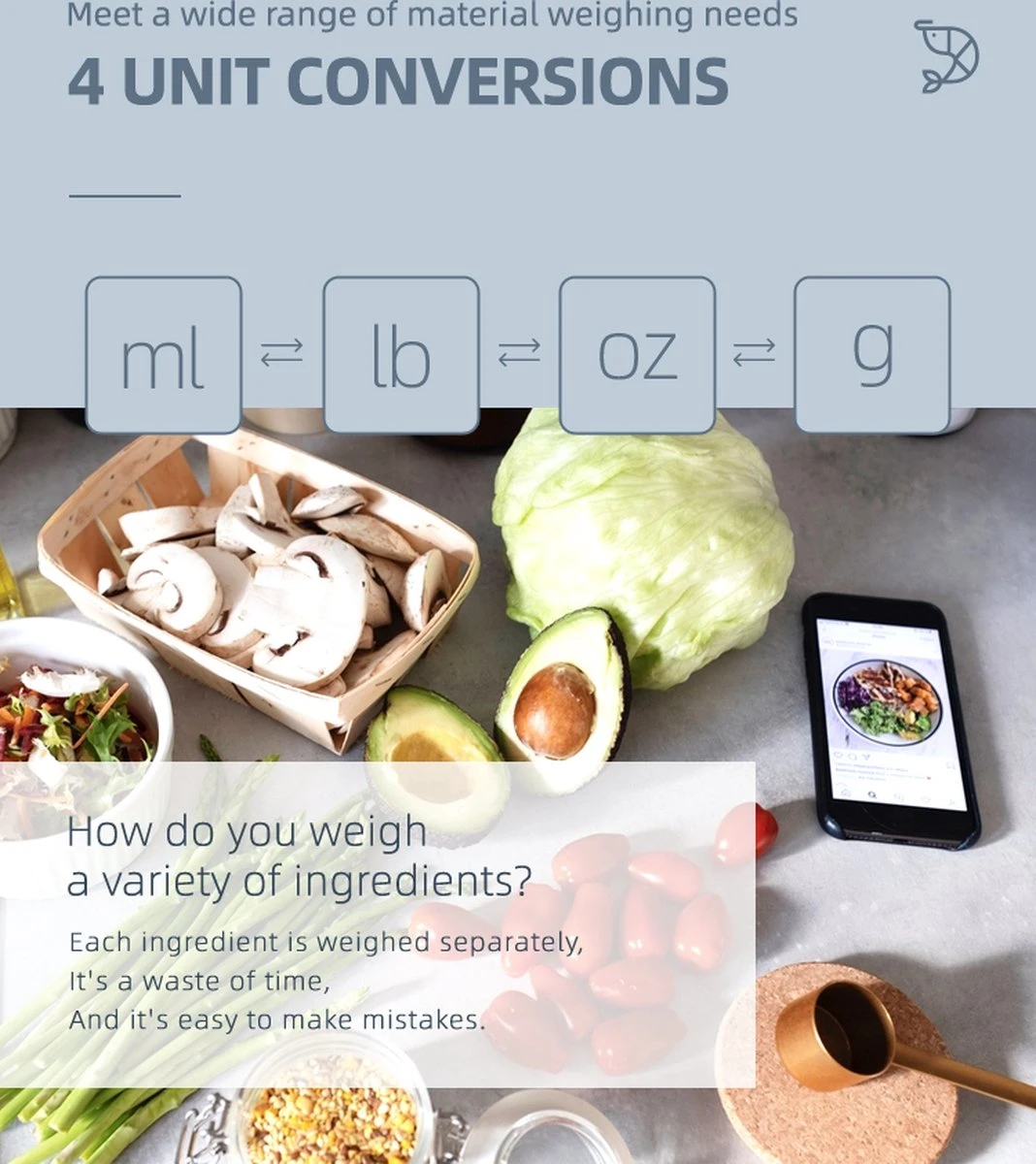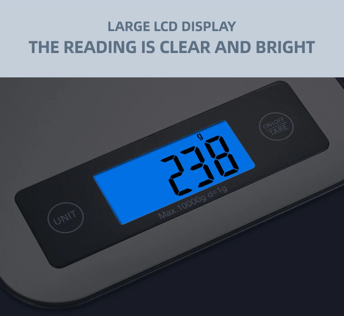 Deze keukenweegschaal kan zowel gram als ml wegen. Hierdoor kan je ook vloeistoffen wegen, zoals water of melk. Naast dat is het bereiden van buitenlandse gerechten ook geen probleem, want hij meet ook lb en oz. Met de knop Unit kan je gemakkelijk wisselen van maateenheid. Je kiest zelf of je dat doet in kilo’s, pounds of stones. Het maximale toelaatbare gewicht dat deze personenweegschaal kan meten is 10 kilo. Op het digitale scherm lees je duidelijk je gewicht af.