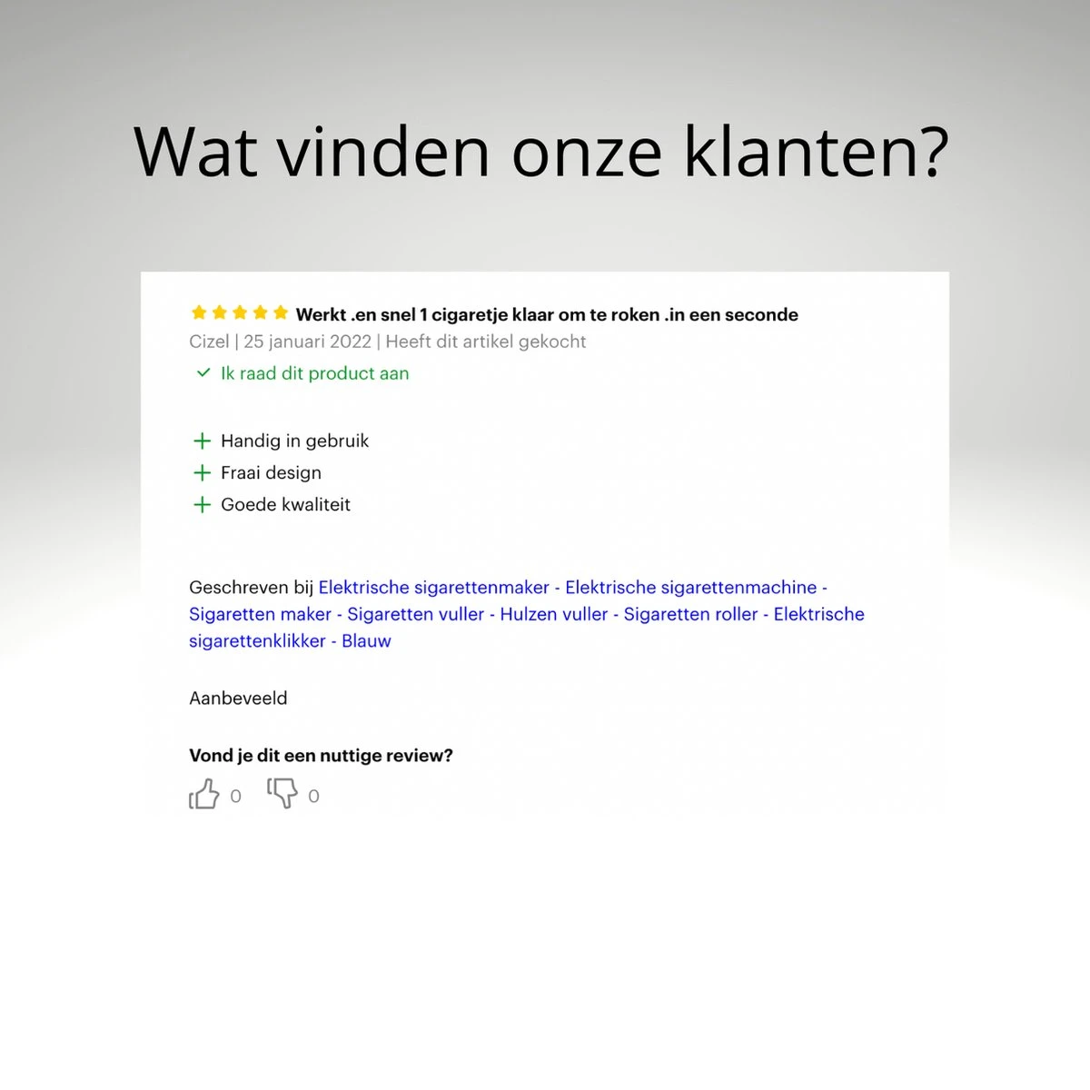 De ene keer is hij te strak gedraaid en de andere keer is hij te los gedraaid en heb je hem na 3 hijsen al op. Wij hebben hier een oplossing voor, namelijk een elektrische sigarettenmaker van Valuqo. Het systeem is ook nog eens eigenlijk erg simpel.