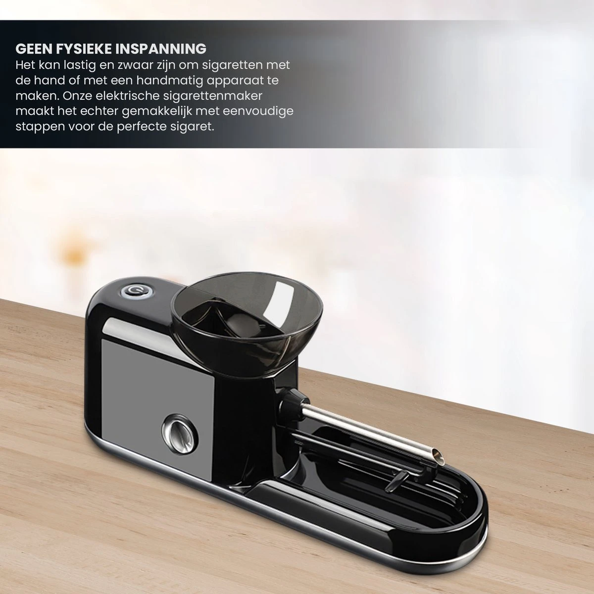 Door deze machine heeft u geen last meer van het gepiel en rotzooi van het handmatig draaien. Tevens zit er een opvangbakje bij waardoor verspilde tabak weer makkelijk gebruikt kan worden en het apparaat niet knoeit.