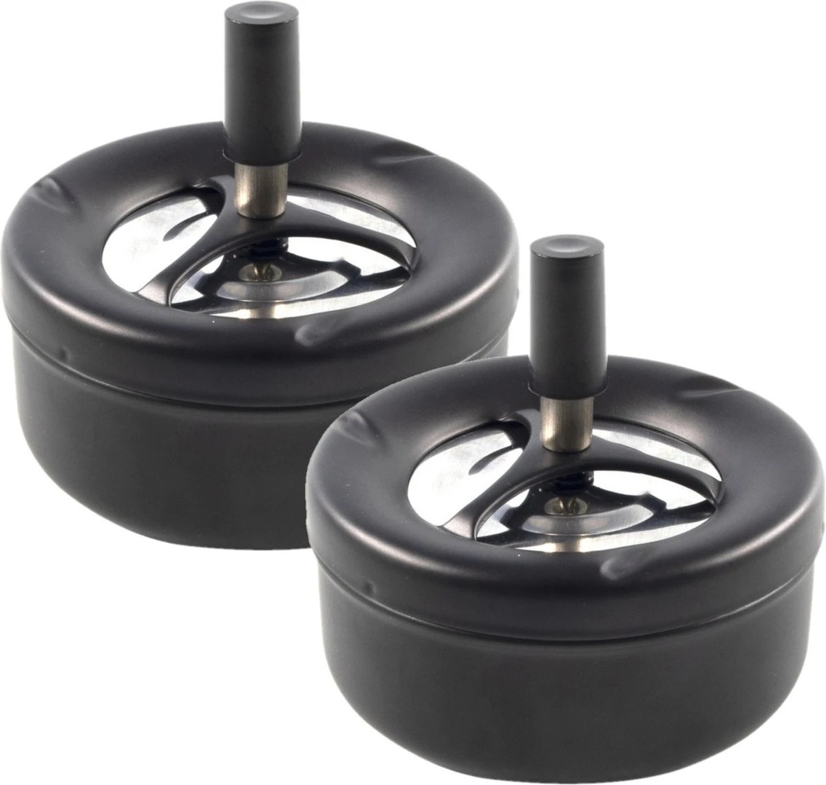 Ronde draai/druk terras asbak zwart RVS 12 x 7 cm.