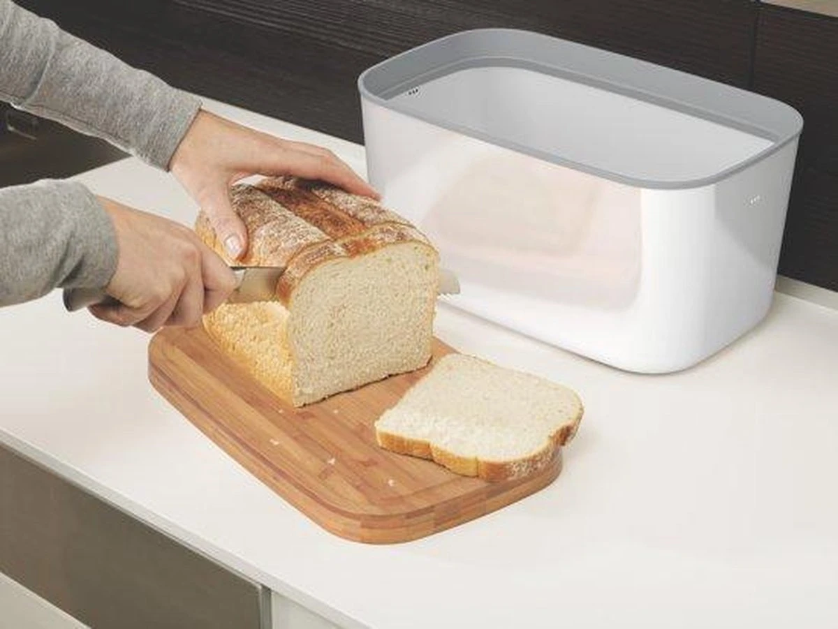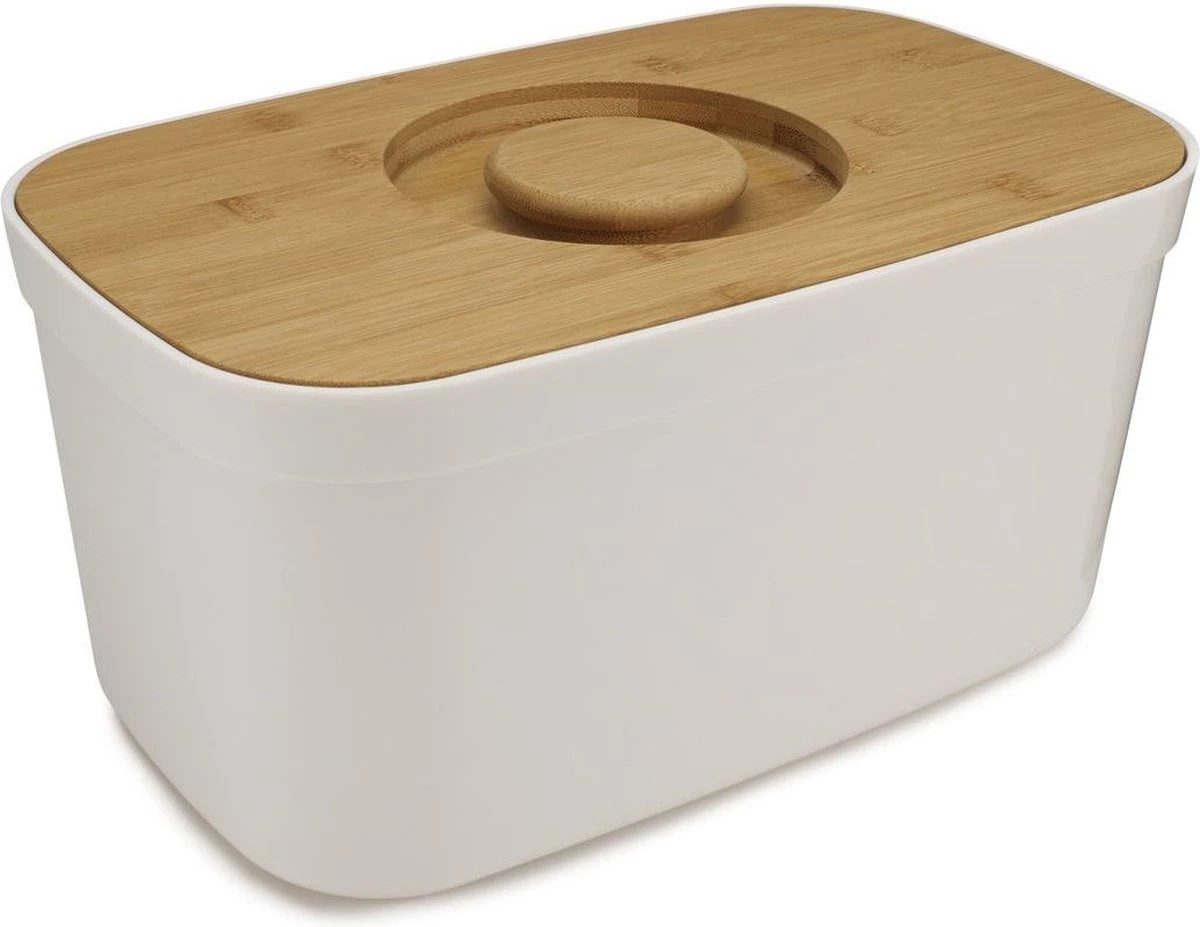 Deze broodtrommel van Joseph Joseph heeft een mooi en strak design. Door de ruime afmeting kun je met gemak een groot brood erin bewaren. Deze blijft hierdoor extra lang vers. Nooit meer uitgedroogd brood! De ontwerpers van Joseph Joseph hebben goed nagedacht over het design en het gebruiksgemak. De houten deksel heeft een grote greep, je tilt deze extra makkelijk op. Daarnaast kun je de deksel ook nog gebruiken als broodsnijplank.