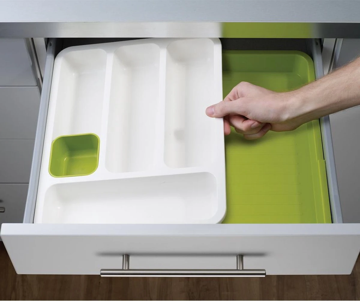 Rommelige lades zijn in een handomdraai opgeruimd met deze uitschuifbare bestekbak van Joseph Joseph. De besteklade is in grootte verstelbaar waardoor de lade inzet in vrijwel iedere keuken te gebruiken is. Zo benut je de ruimte in je keukenlade maximaal!