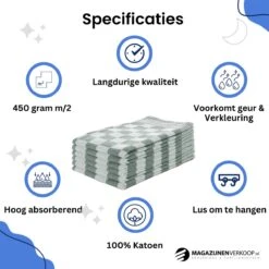 Theedoeken – Horeca Kwaliteit – Katoenenen Theedoeken Set – 12 X – Groen Wit – Ophang Lus