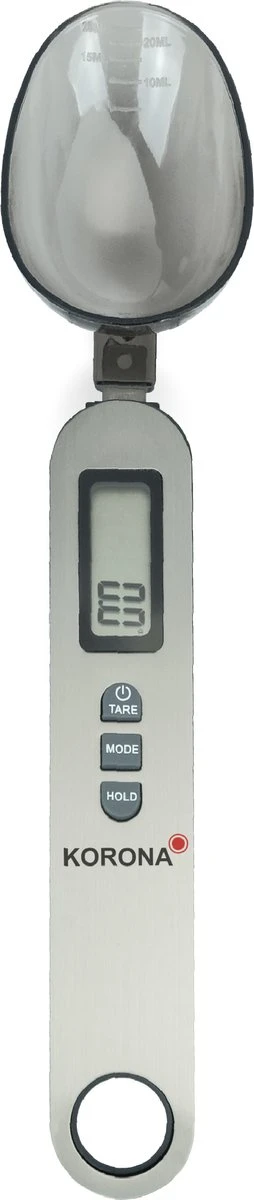 De Korona Eva is een digitale weegschaal in de vorm van een lepel die tot 0,1 gram nauwkeurig meet. Een exacte hoeveelheid afwegen is nog nooit zo snel en eenvoudig geweest. Te gebruiken voor kruiden, koffie thee of olie