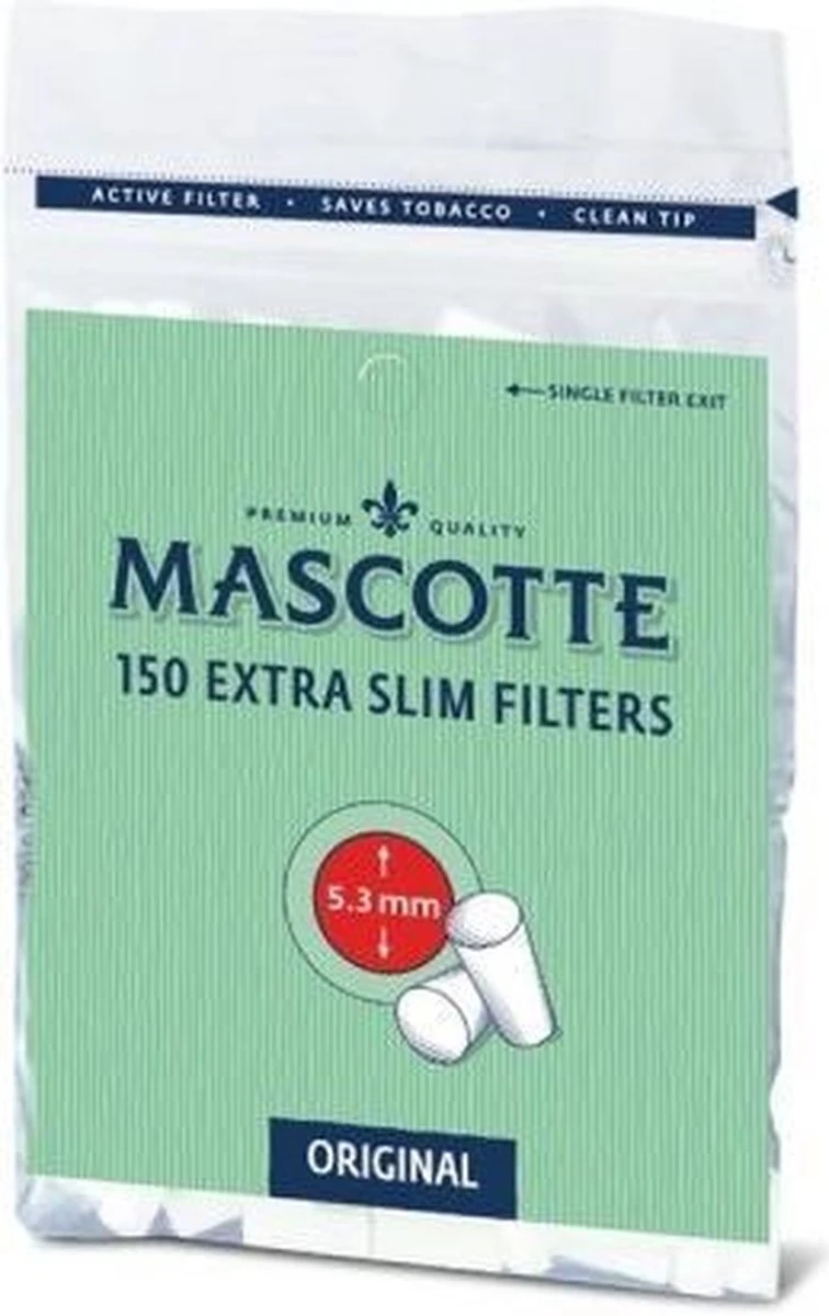 Deze filter zorgen voor een schonere rookervaring. De smalste filters van Mascotte hebben een diameter 5,3 mm. Er zitten 150 Mascotte Extra Slim Filters in een zakje.