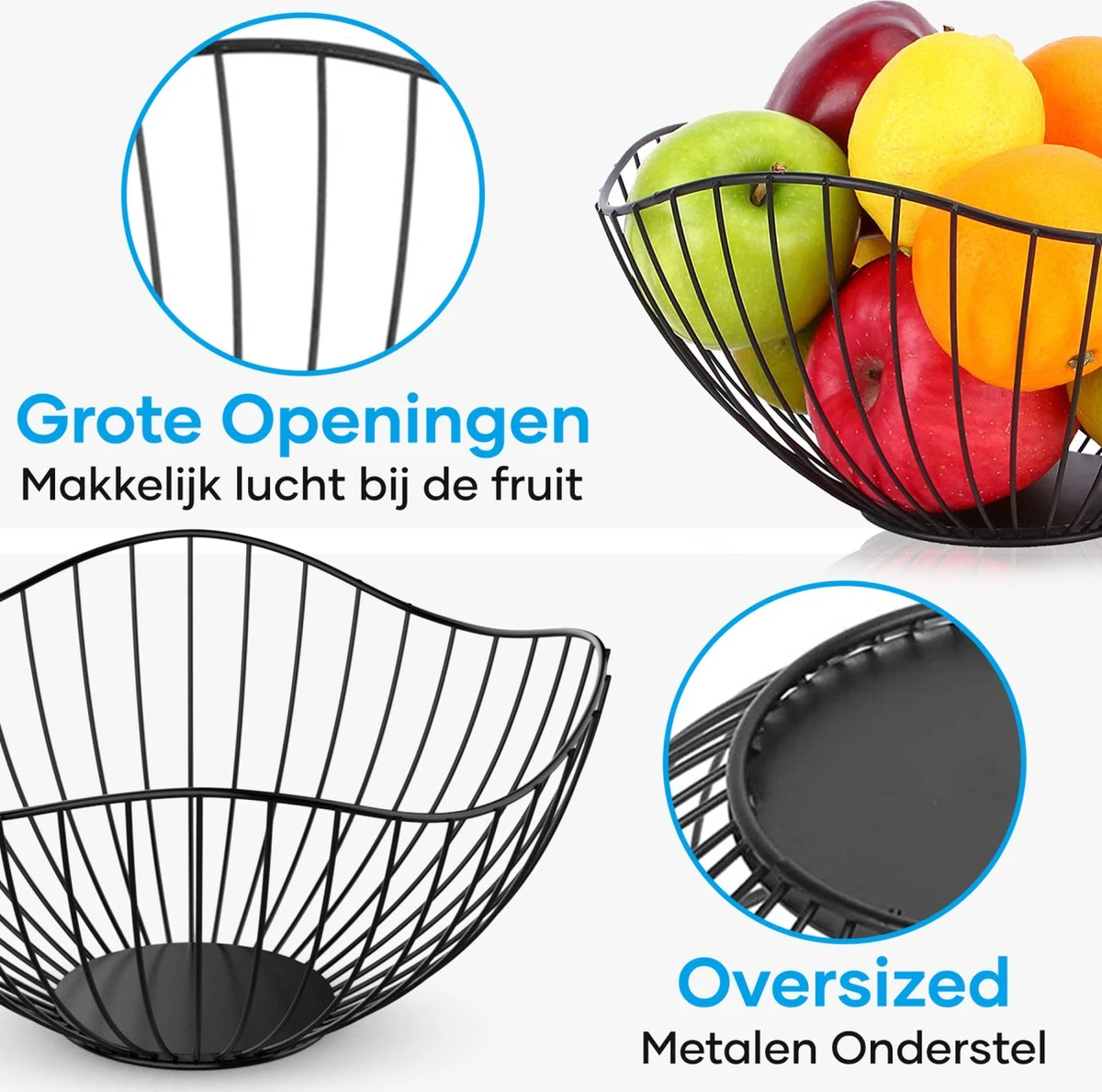 De MATTI® Fruitmand is een stijlvolle en functionele fruitmand die een vleugje elegantie toevoegt aan elke keuken, kantoortafel of eettafel. De mand is gemaakt van duurzaam ijzer en heeft een uniek geometrisch ontwerp dat direct de aandacht trekt.
