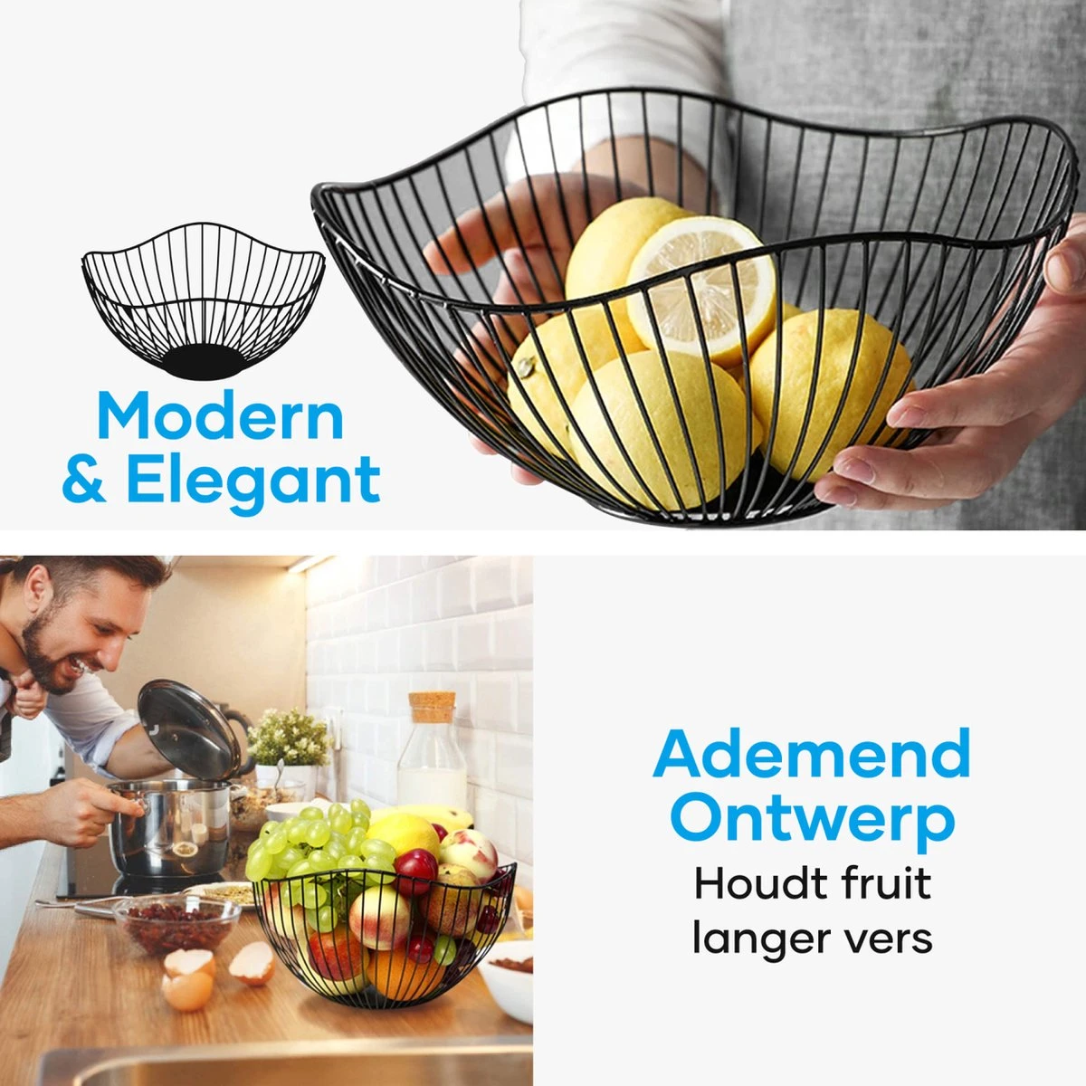 Bewaar je fruit vers en stijlvol in de MATTI® Fruitmand. Het moderne design past bij ieder interieur en is daarom de ideale keukendecoratie maar ook perfect voor op kantoor. Daarbij houdt het je fruit vers door het ademende ontwerp. Fruit blijft namelijk langer vers door het open ontwerp.