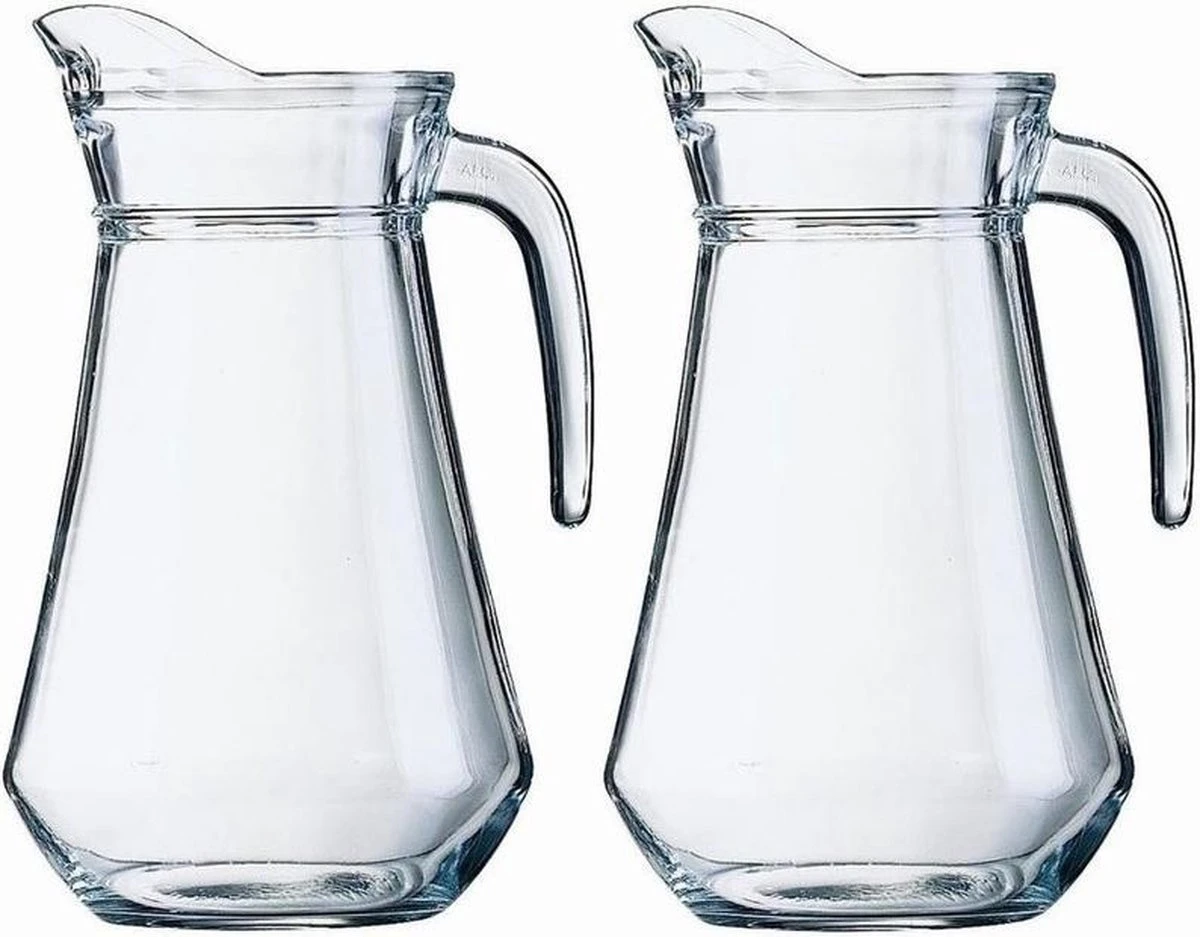 Merkloos 2x Glazen Water Karaf 1,3 Liter – Sapkannen/waterkannen/schenkkannen