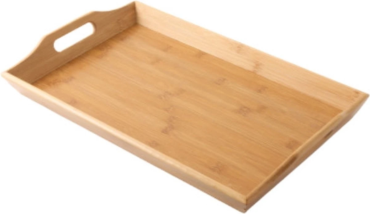 Dienblad rechthoekig Groot Dienblad met 2 handvaten, gemaakt van Bamboe hout. Afm 50 x 30 x 6 Cm.