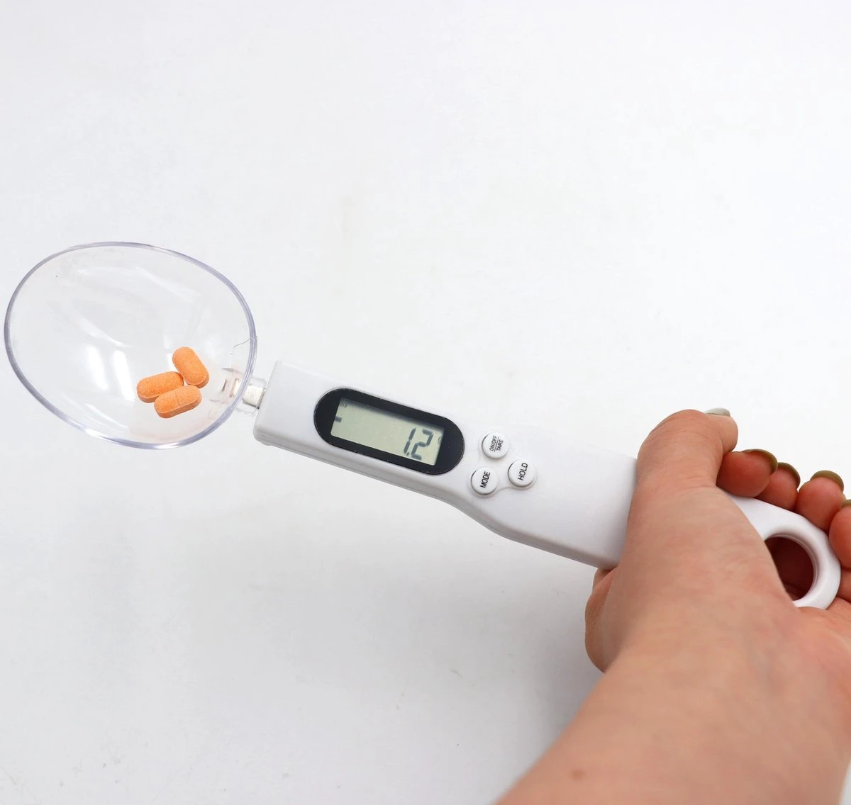- De Lepelweegschaal heeft een vermogen van 500 g en een 0,1-g-nauwkeurige verdeling en is daarom ideaal voor het precies afwegen