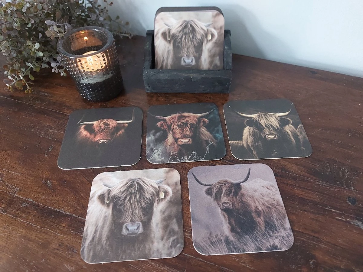 Soms is het gewoon lastig om te kiezen… daarom heb ik 5 landelijke Schotse Hooglander onderzetters die mooi bij elkaar passen samengevoegd in deze voordeelset. Van elke afbeelding zitten twee viltjes in de set. Op deze landelijke onderzetters staat aan beide zijden een prachtige afbeelding van een Schotse hooglander.