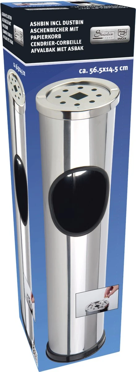 Houd je omgeving schoon en voorkom rondslingerende peuken en zwerfafval met deze compacte, staande afvalbak met geïntegreerde asbak. De rookzuil met prullenbak is een handige toevoeging aan iedere ingang en past bijna overal vanwege de beperkte afmetingen (circa 56 cm hoog met een diameter van zo’n 14,5 cm). De rookzuil maak je gemakkelijk schoon door het deksel eraf te halen, het opvangbakje van de as te verwijderen en deze te legen in een afvalbak.