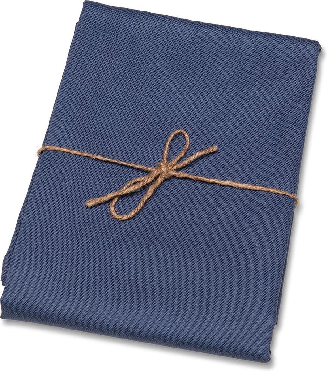 Donkerblauw tafelkleed van katoen/polyester met formaat 140 x 250 cm. Het tafelkleed is mooi afgewerkt aan de randen en op 30 graden wasbaar.