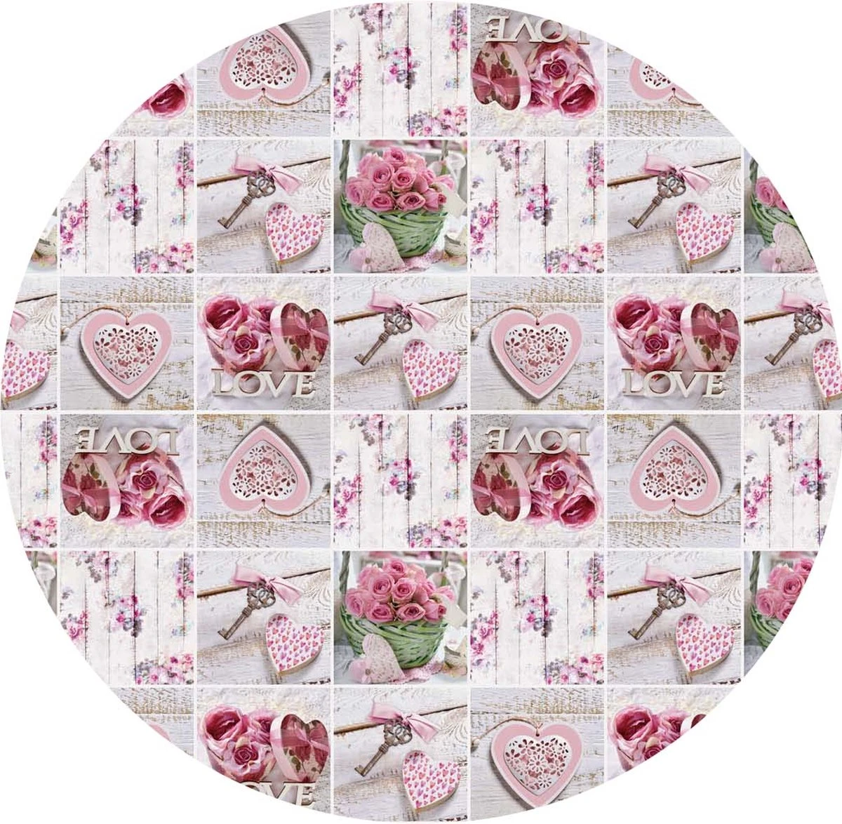 Merkloos Tafelzeil Rond Love Rozen – 160cm