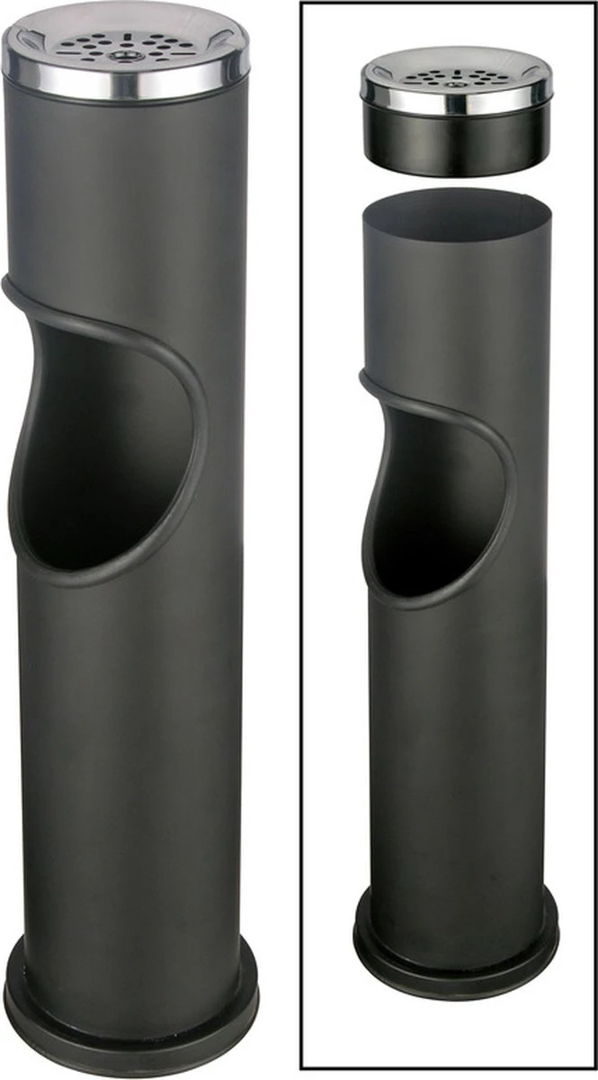 Zwarte staande asbak met uitneembare prullenbak 46,5 cm. Handige 2 in 1 asbak voor afval en sigarettenafval. Formaat: 6,5 x 49,5 cm.