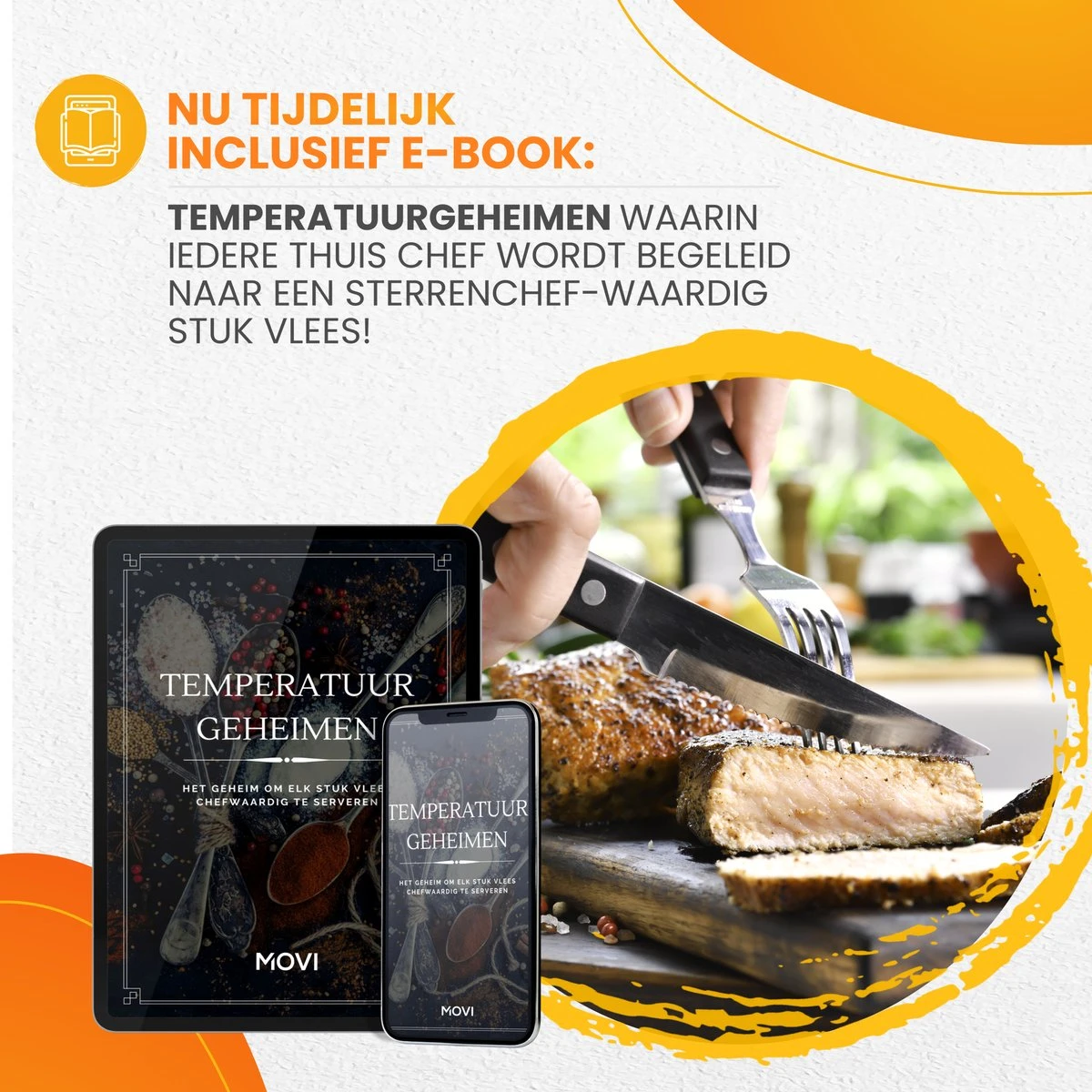 Inclusief e-Book “Temperatuurgeheimen” waarin de kerntemperaturen van diverse vleessoorten jou naar het perfecte stukje vlees begeleiden. Uniek voor FoodBuddy® gebruikers!