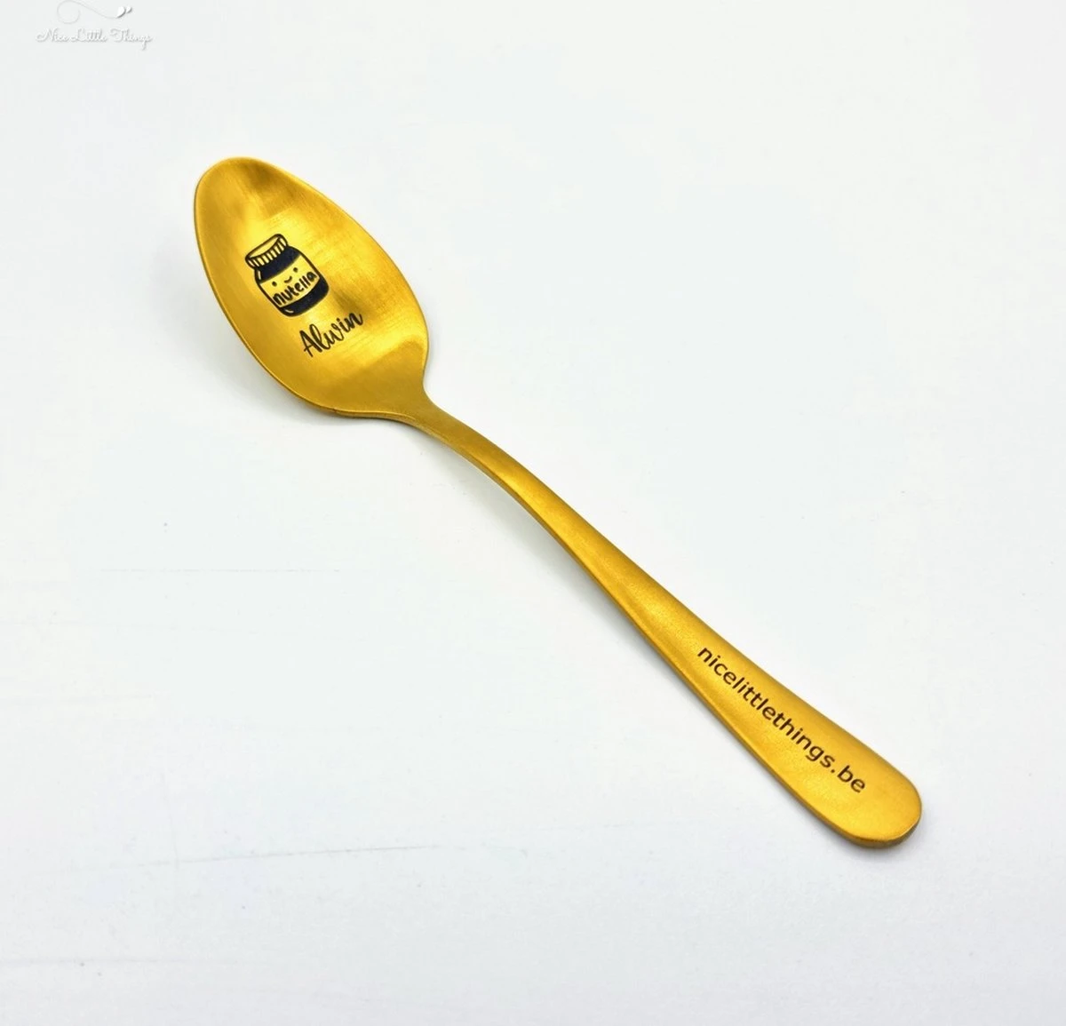 Deze eetlepel is gemaakt van roestvrij staal met een goudkleurige afwerking. Daarnaast heeft deze gouden lepel een fijne en sublieme lijn, die daarom zorgt voor een geraffineerde en chique touch aan jouw tafel. De gravure is van extreem hoge kwaliteit en door het gebruik van een speciale laser techniek heel duurzaam.