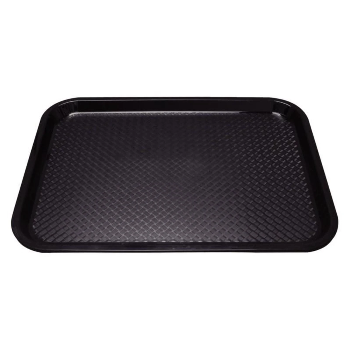 Voor de optimale (zelf)bediening kiest u deze zwarte Olympia Kristallon polypropyleen anti-slip dienbladen. Dankzij de anti-sliptextuur gaan borden en glazen niet schuiven, zelfs als het dienblad nat of vochtig is. Zo wordt het risico op kostbare en gevaarlijke ongelukken aanzienlijk beperkt.