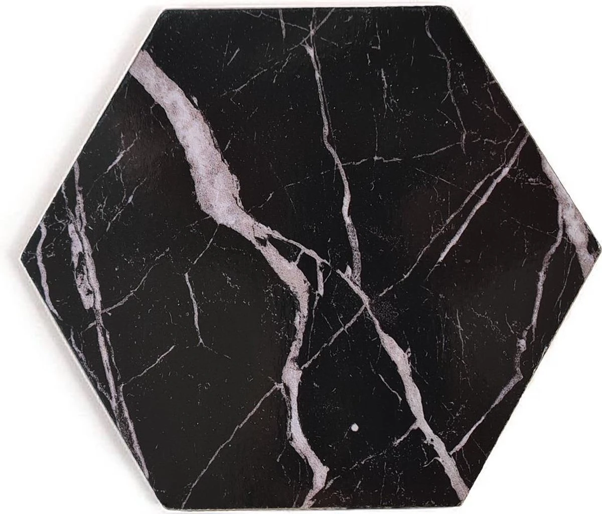 Deze stijlvolle onderzetters zorgen ervoor dat jouw tafel beschermd blijft tegen krassen van glaswerk of porselein. De onderzetters zijn gemaakt van kurk en doordat de bovenkant voorzien is van een vochtbestendige laag, zijn de onderzetters gemakkelijk afneembaar en schoon te houden. De zwart marmerlook onderzetters hebben een hele chique uitstraling en zijn een echte eyecatcher op jouw eetkamer- of salontafel.