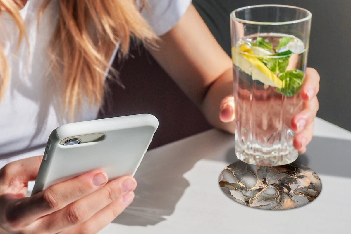 Onze stijlvolle onderzetters voorkomen kringen, vlekken en beschadigingen en houden jouw salon-, eettafel, en bureau in perfecte staat! De onderzetters zijn gemaakt van kurk met een harde toplaag. Dit zorgt voor een afdruk met hoge kwaliteit en scherpte, waarbij de kleurvastheid gegarandeerd wordt. De onderzetters zijn geschikt voor glazen en kopjes met zowel koude als warme dranken.