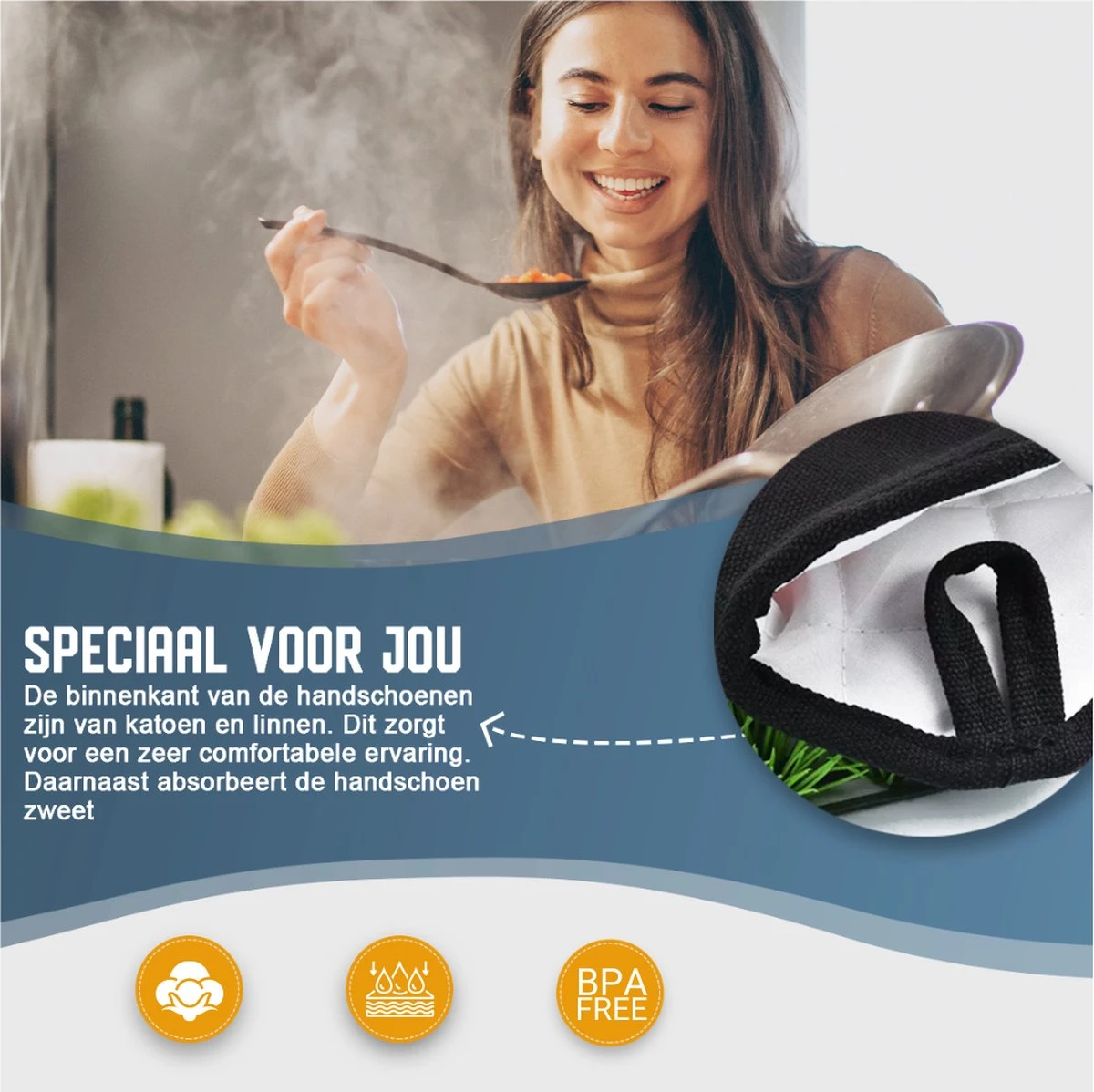 zodat je potten, pannen en kookgerei kunt vastpakken zonder de angst voor brandwonden op te kunnen lopen.