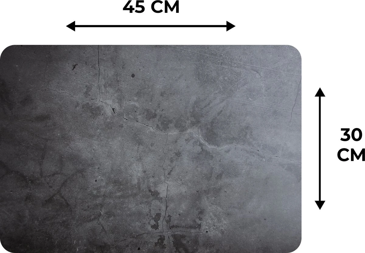 Decoreer jouw keuken met deze placemat, de mat heeft een print van beton. Niet alleen ziet de mat er netjes uit, de mat biedt ook goede bescherming tegen beschadigingen.