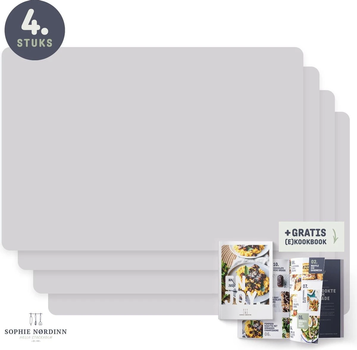 De placemats zijn van hoogwaardig materiaal gemaakt, komen in vijf (5) verschillende effen kleuren en zijn ideaal per set van vier (4) verpakt. Met een formaat van 30 cm x 40 cm bieden deze onderleggers voldoende ruimte voor een bord en bijbehorend bestek. De flexibele placemats zijn eenvoudig op te vouwen, waardoor meenemen naar bijvoorbeeld de camping of picknick eenvoudig is. De placemats zijn hittebestendig (tot 220 °C) en gemaakt van sterk antislip materiaal.
