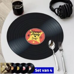 MikaMax Vinyl Placemats – Placemats – Retro – Lp Placemats – Makkelijk Schoon Te Maken – Geleverd In Een Design Hoes – 4 Stuks – 3mm Dik