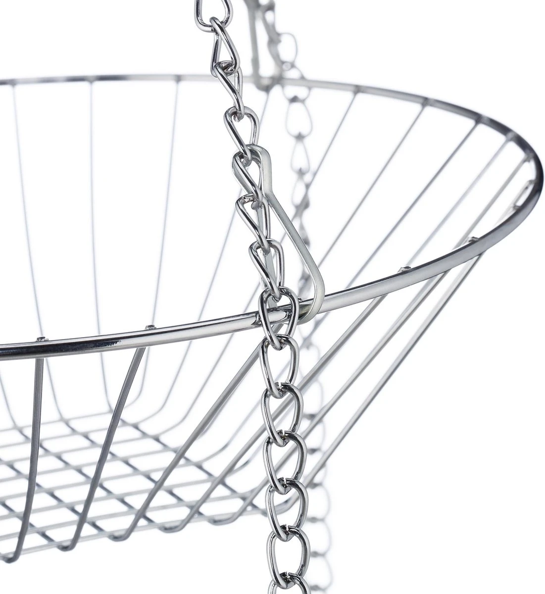 Fruit en groente horen bij een gezonde voeding – dankzij de hangende etagère voor fruit hangen vitaminebommen zoals appels, perziken of mandarijnen vanaf nu af aan altijd binnen handbereik. Vooral in kleine keukens maak je met de hangende etagère met 3 etages optimaal gebruik van de ruimte. De fruitmanden vormen een harmonisch trio maar zijn ook los van elkaar te gebruiken. Hiervoor hoef je slechts de kettingen eraf te halen. Omdat de draadmanden van verschillende groottes zijn, kun je ze goed in elkaar stapelen.