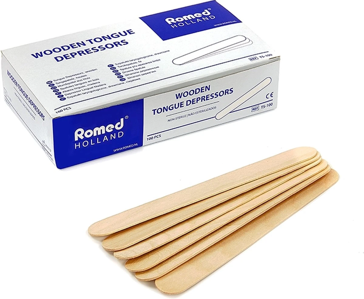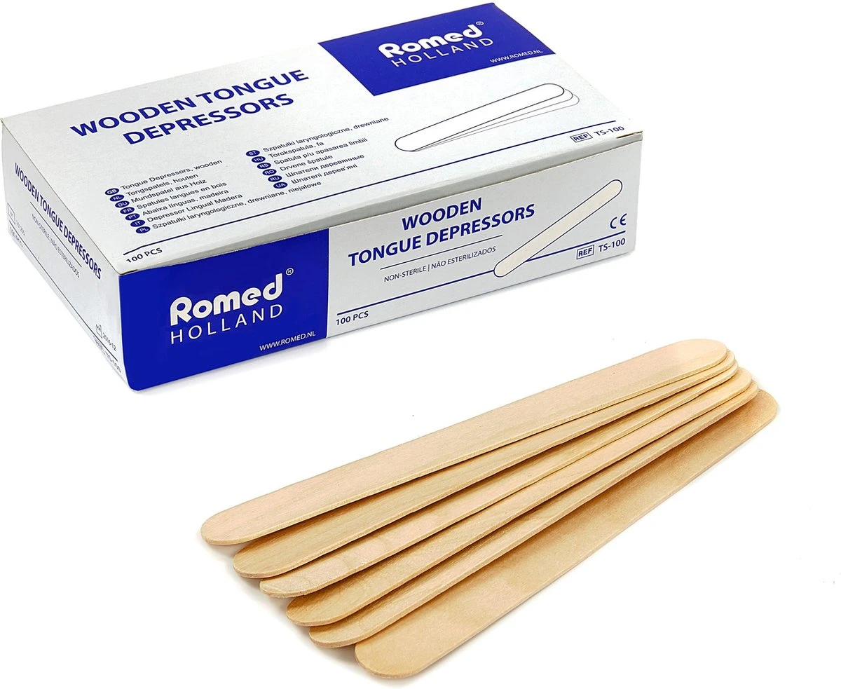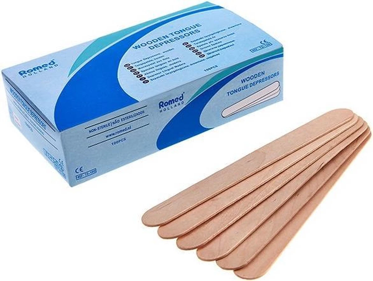 Deze houten tongspatels zijn onmisbaar binnen uw praktijk. Met een tongspatel kunt u gemakkelijk de tong naar beneden houden. Denk hierbij aan de situatie wanneer u achterin de keel van uw patiënt moet kijken en er vrij zicht nodig is. De houten spatels zijn hygiënisch vervaardigd en geheel splintervrij. Mocht u onze tongspatels bestellen is het goed om te weten dat er 100 tongspatels in een doosje zitten.