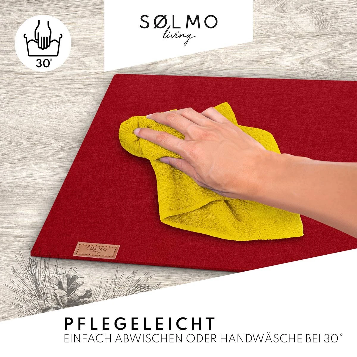 Sølmo I Design Tafelloper Rood Vilt I 150x40cm Tafelloper I Scandinavische Vilt Tafelloper Wasbaar Met Leren Label – Tafelloper Winter (Wijnrood)