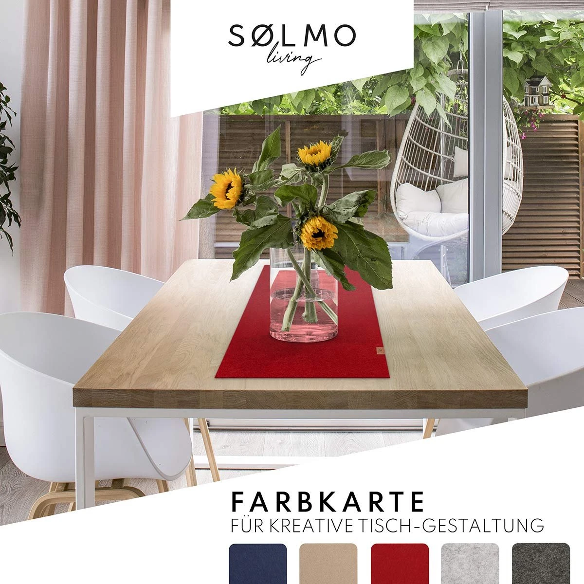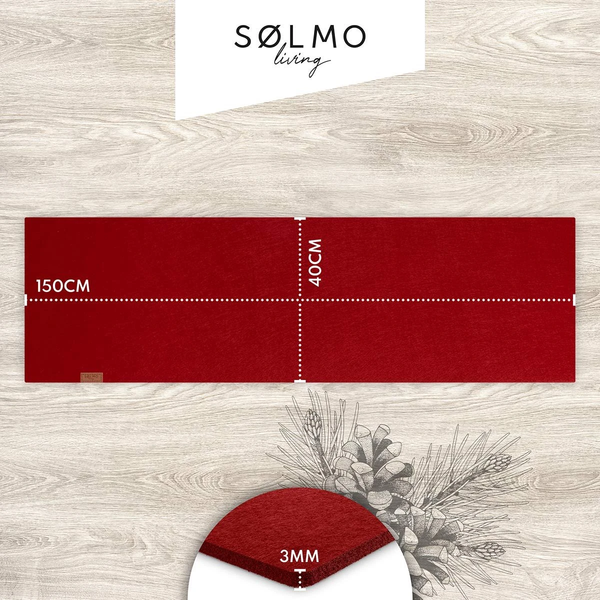 SØLMO DESIGN: Vilten tafelloper (150 x 40 cm) met een materiaaldikte van 3 millimeter en discreet leren label. Het klassieke ontwerp voegt veel elegantie toe aan elke eettafel.