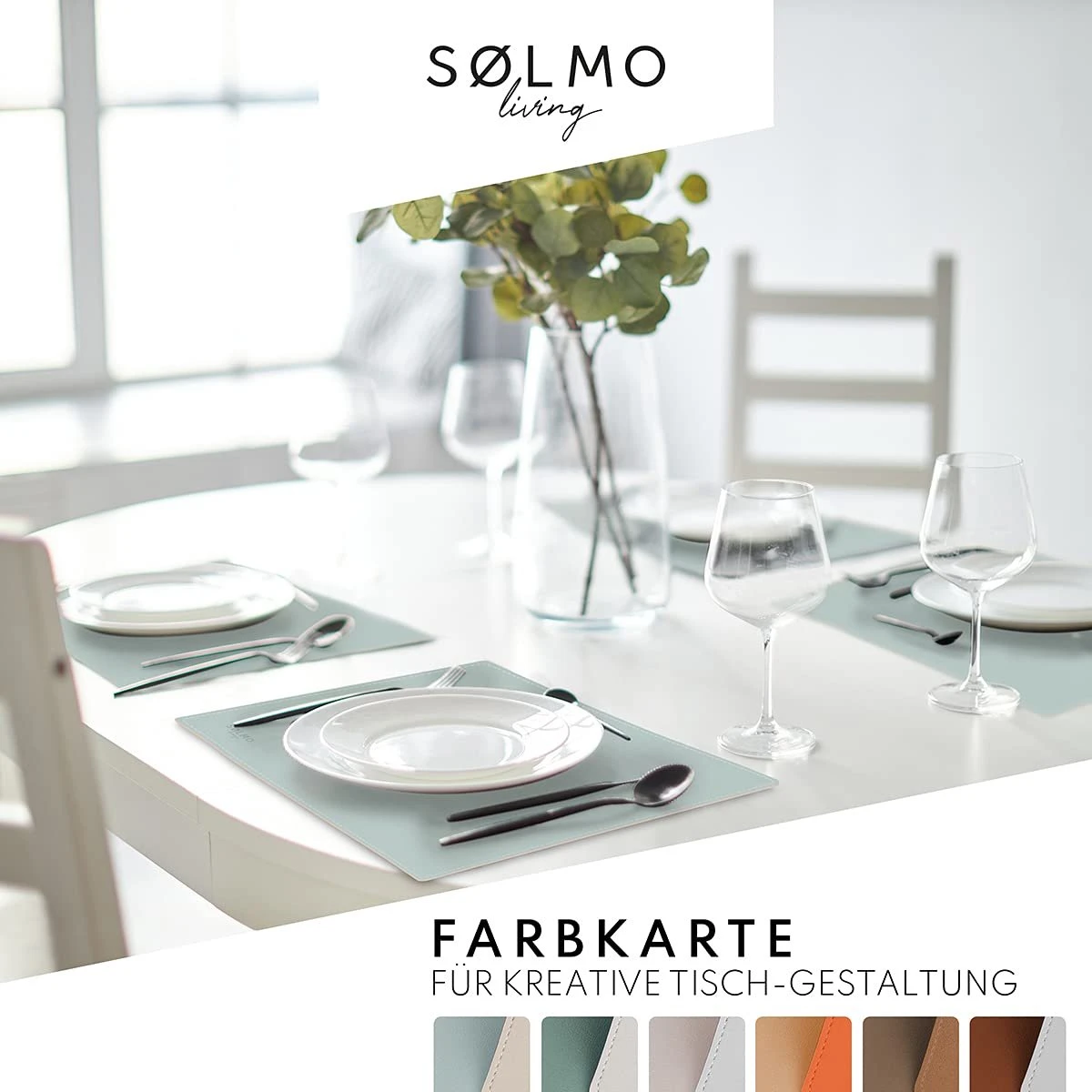 SØLMO DESIGN: Hoogwaardige verwerkte tafelset van PU-leer – inclusief bijpassende onderzetter! Het wasbare imitatieleer wordt gekenmerkt door zijn onderhoudsvriendelijke eigenschappen. In een set van 4. Afmetingen: 43 x 0,2 x 30 cm | 10 x 0,2 x 10 cm (LxHxB)