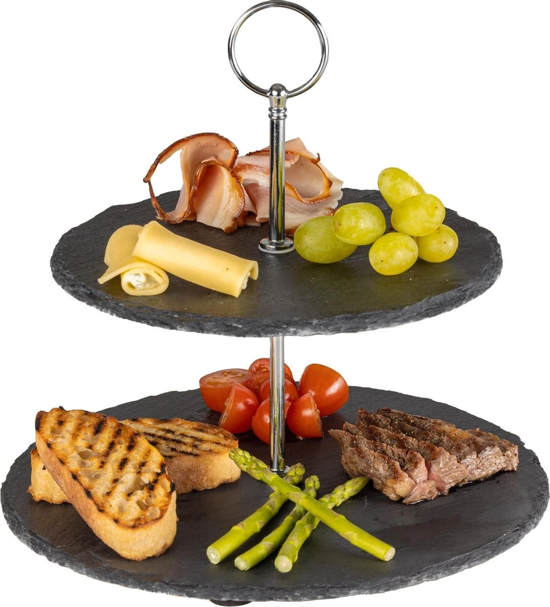 | Verpakkingsinhoud | Sareva Etagere / Serveertoren – Leisteen – 2-Laags |